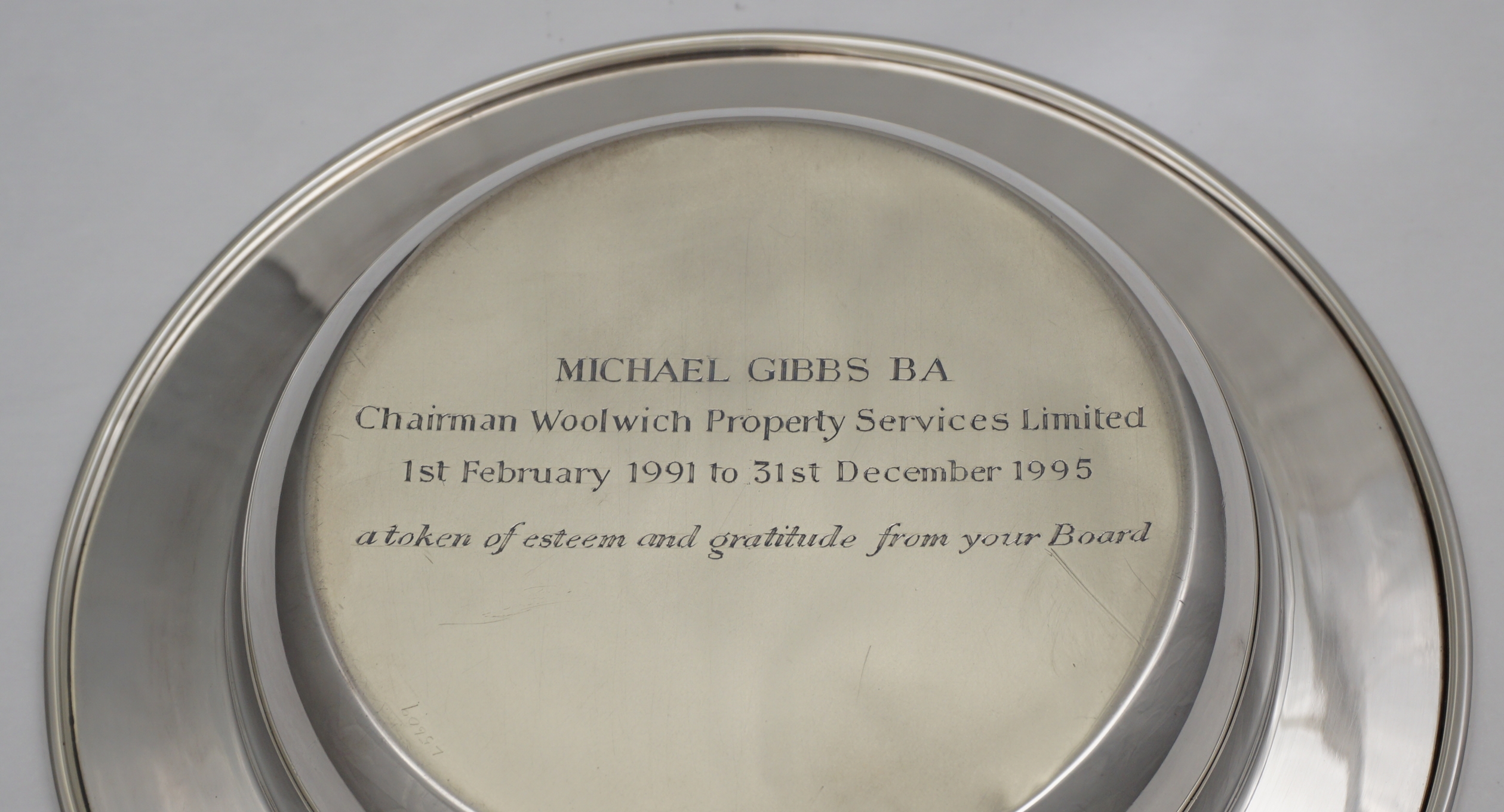 DESCRIPTION | Vintage English solid sterling silver cereal bowl with a later presentation engraving to the underside of the base. |
