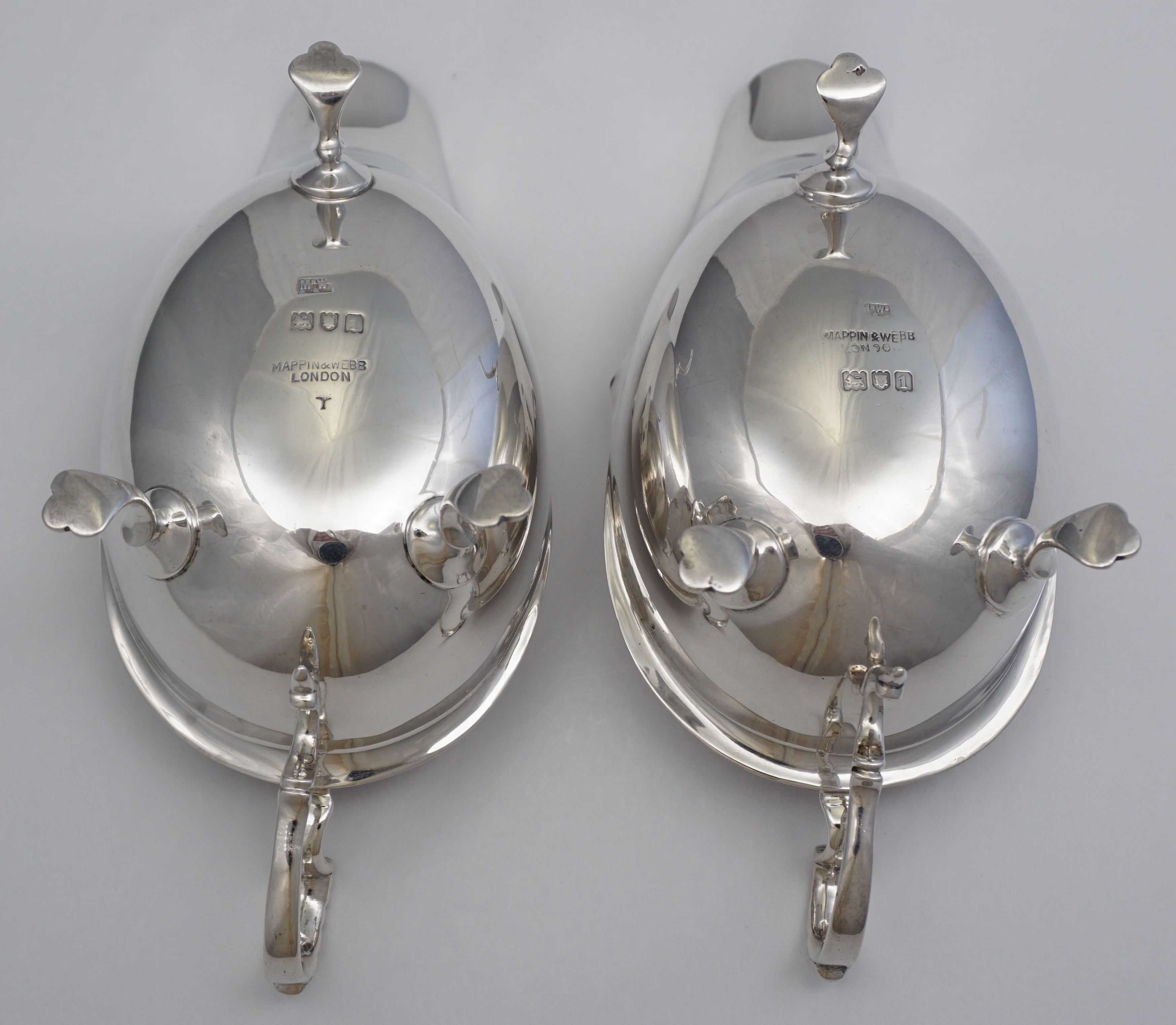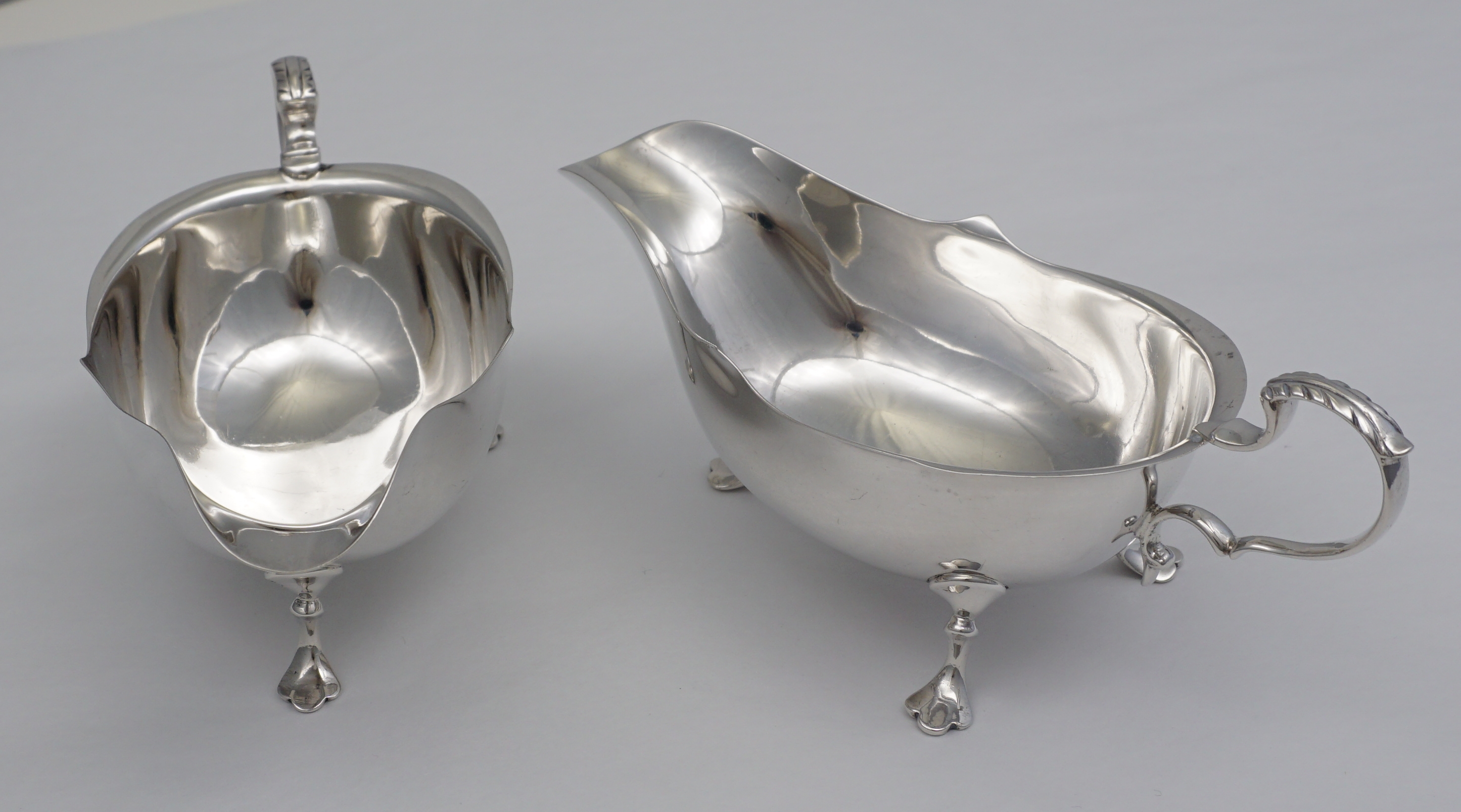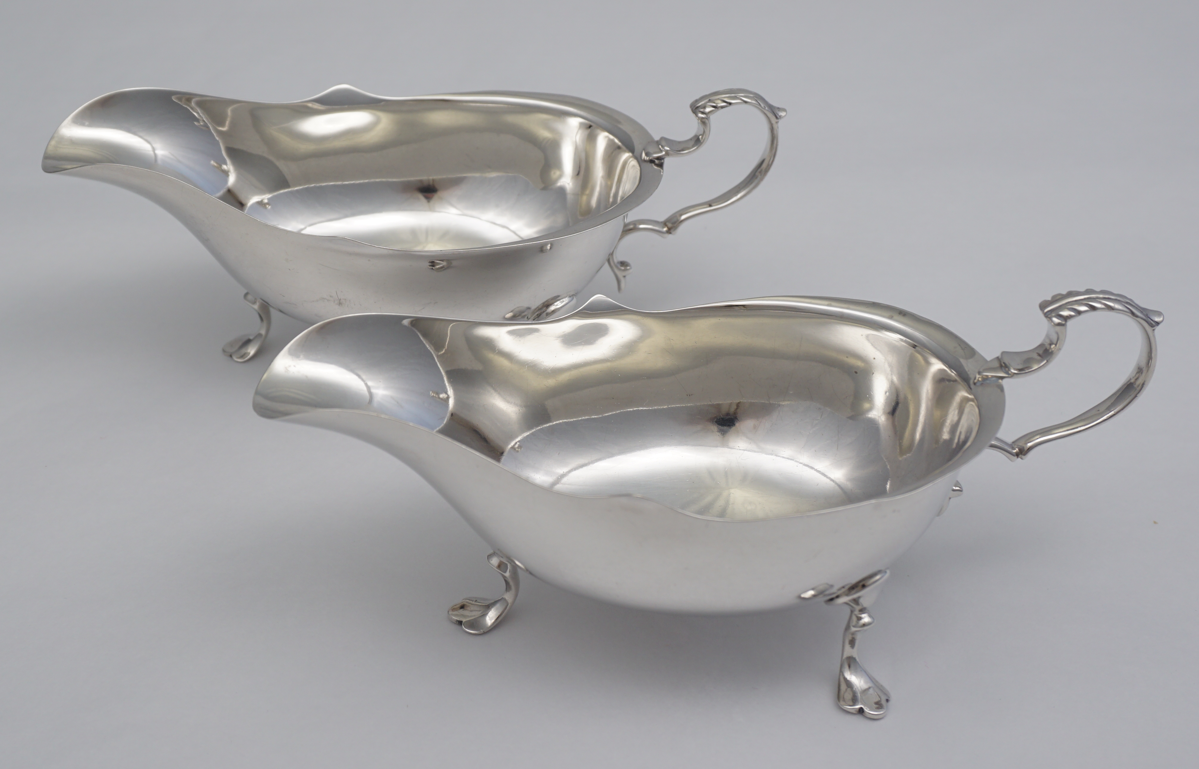 DESCRIPTION | Pair of antique English solid sterling silver sauce boats. |