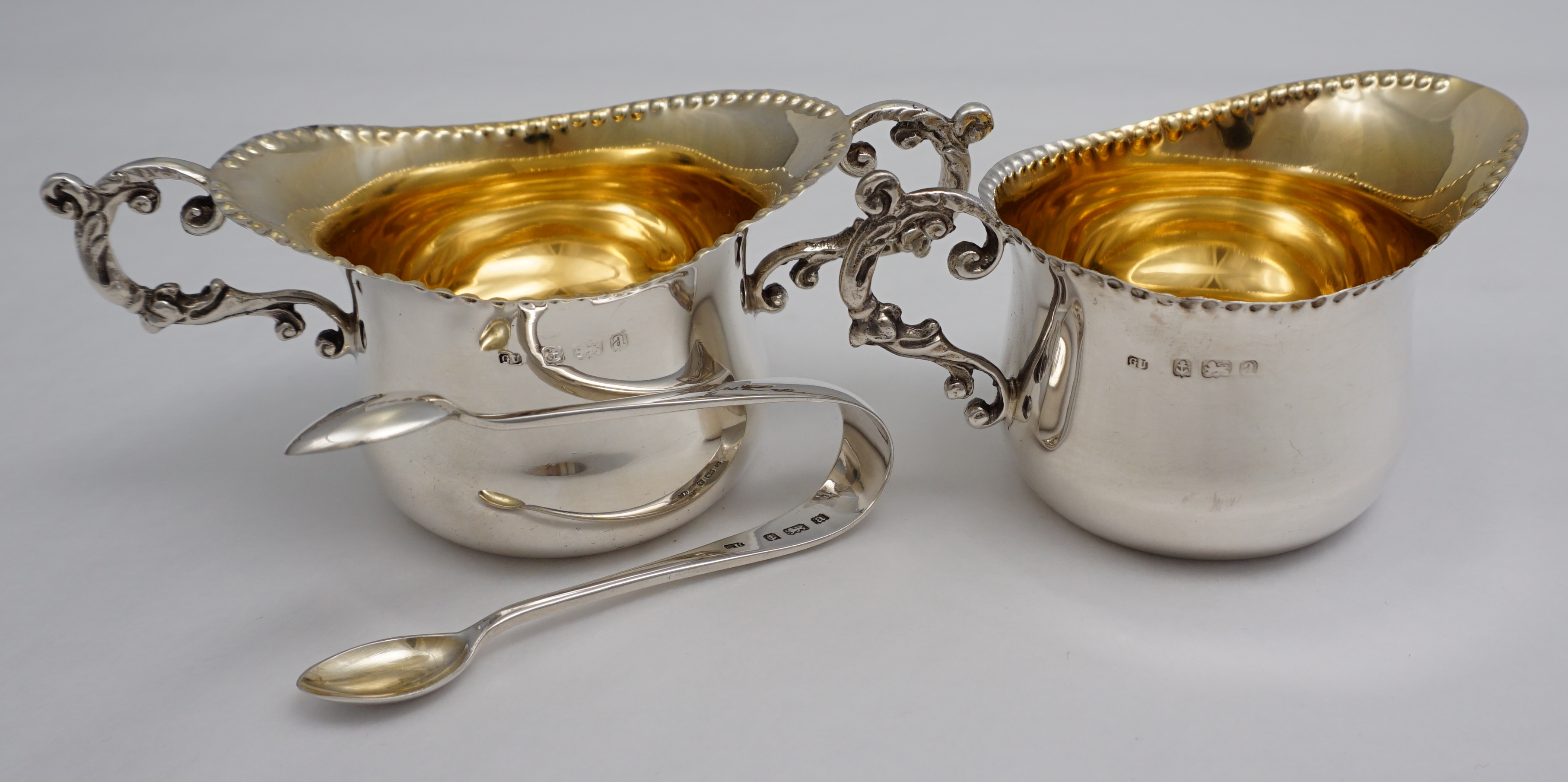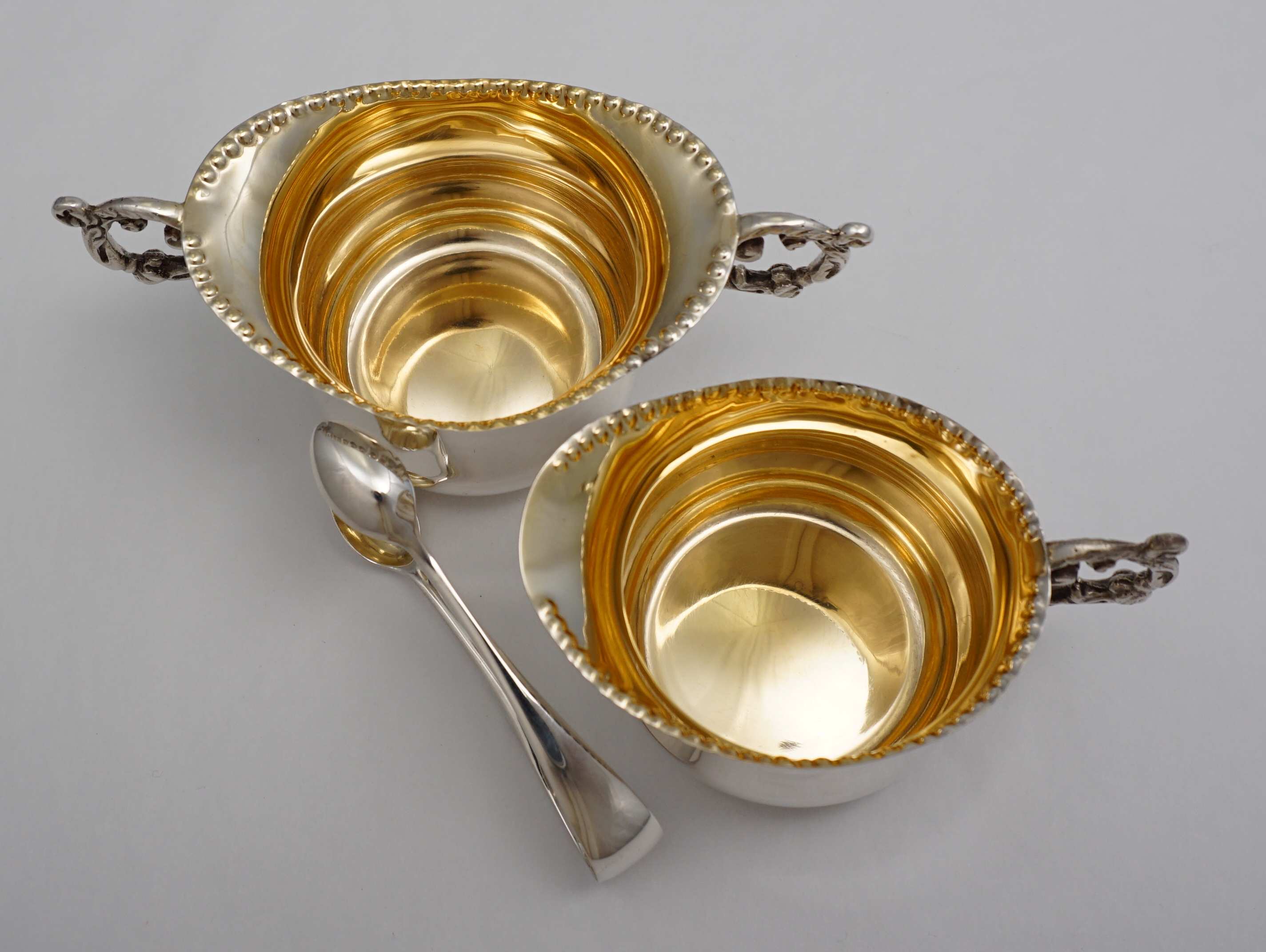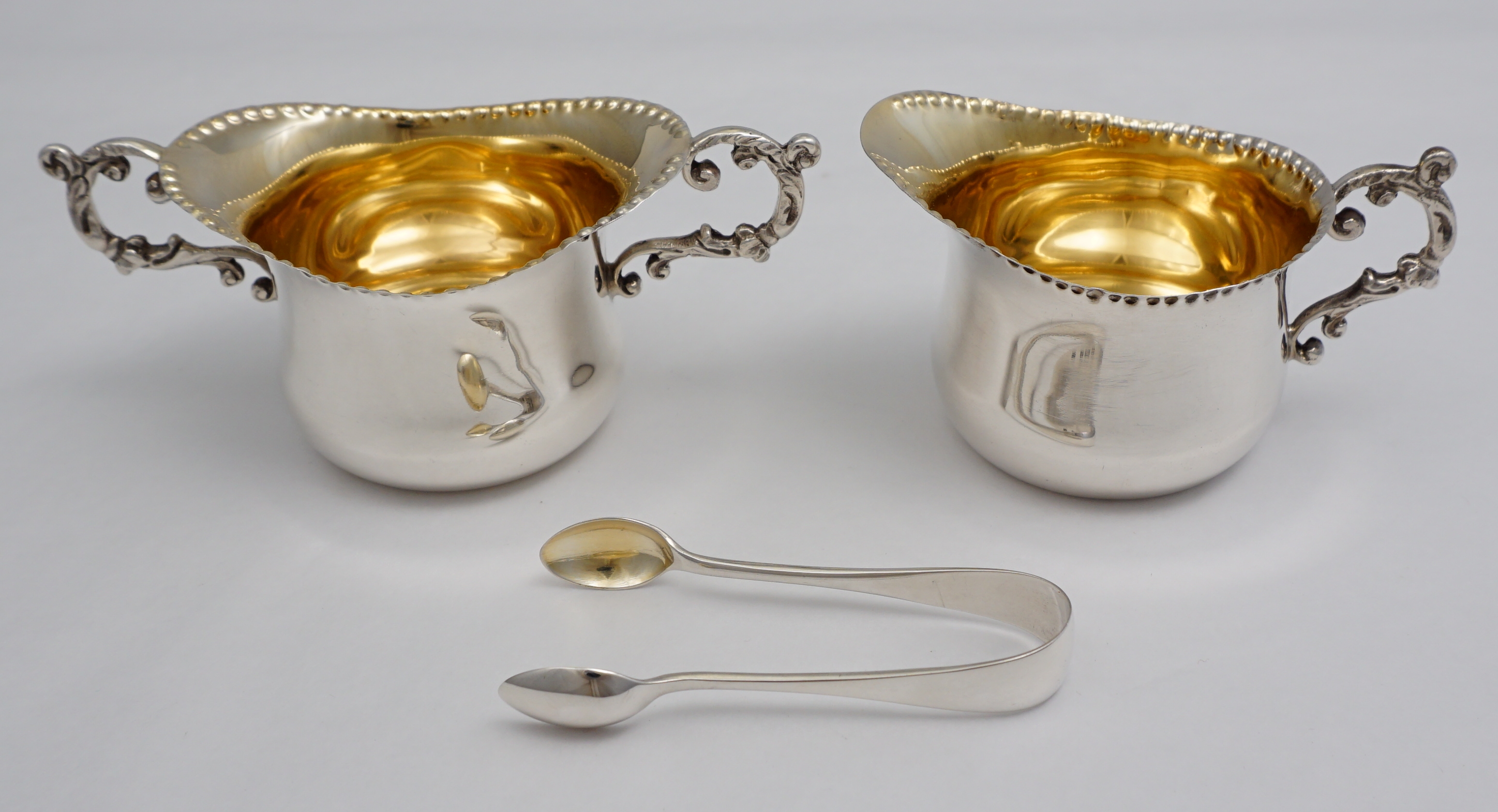 DESCRIPTION | Pretty little Victorian solid sterling silver gilt strawberry set consisting of sugar bowl, cream jug and sugar tongs, all with fully gilded interiors and contained within the original gilt lined leather, silk and velvet case. Once the property of Patricia Knatchbull, 2nd Countess Mountbatten of Burma and third cousin to Queen Elizabeth II. In March 2021 Sotheby's in London sold the sexier items of Patricia's inherited estate for £5.6 million. In April 2021 my local auction house sold of some of the more personal and domestic items. I bought a few of them. There is much about this family already on the internet so I will not add more here. Inside the case is a handwritten slip of paper that is most likely from an old inventory. |