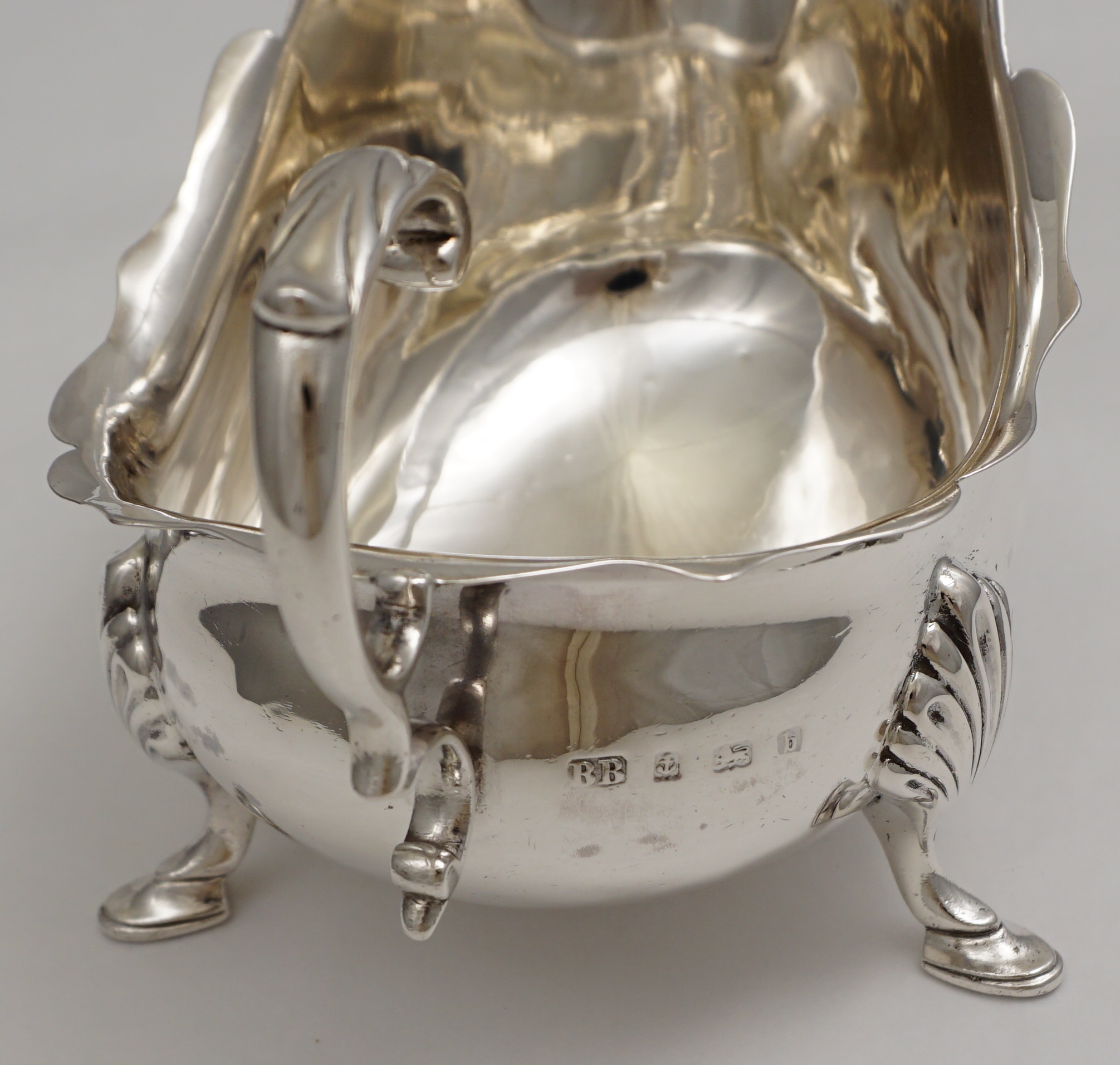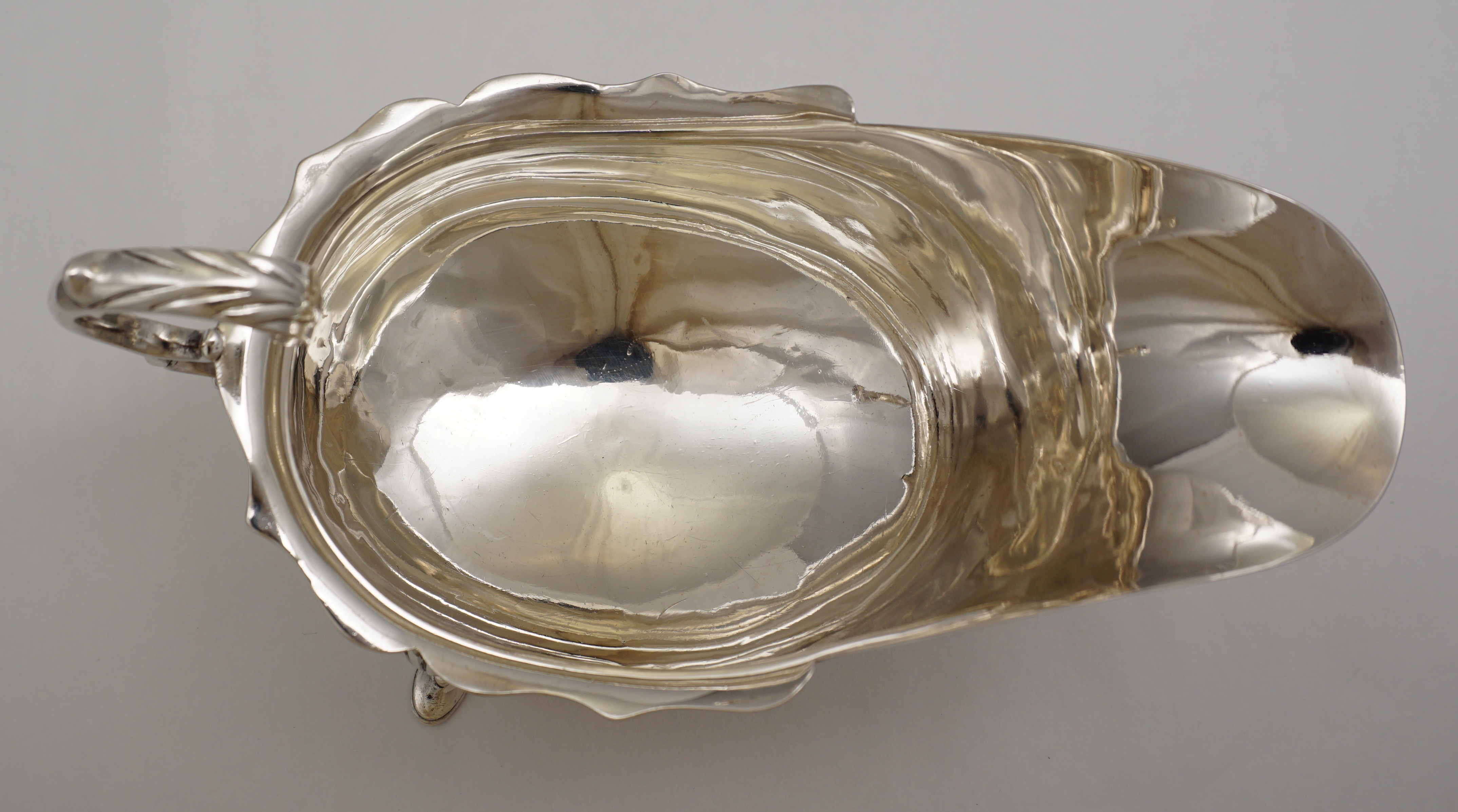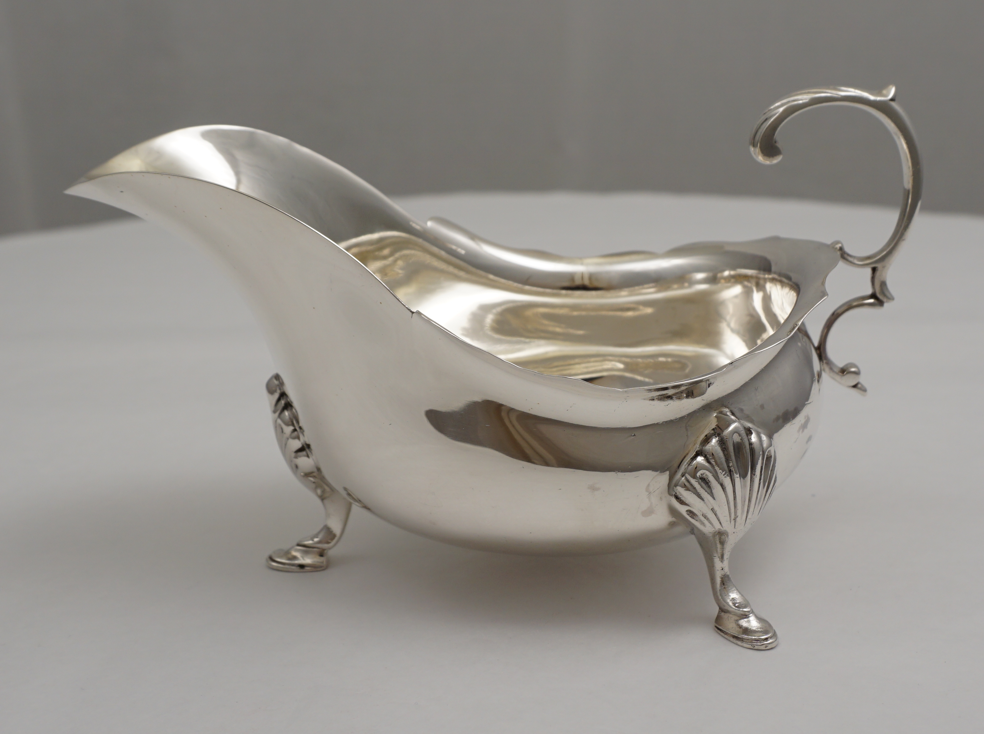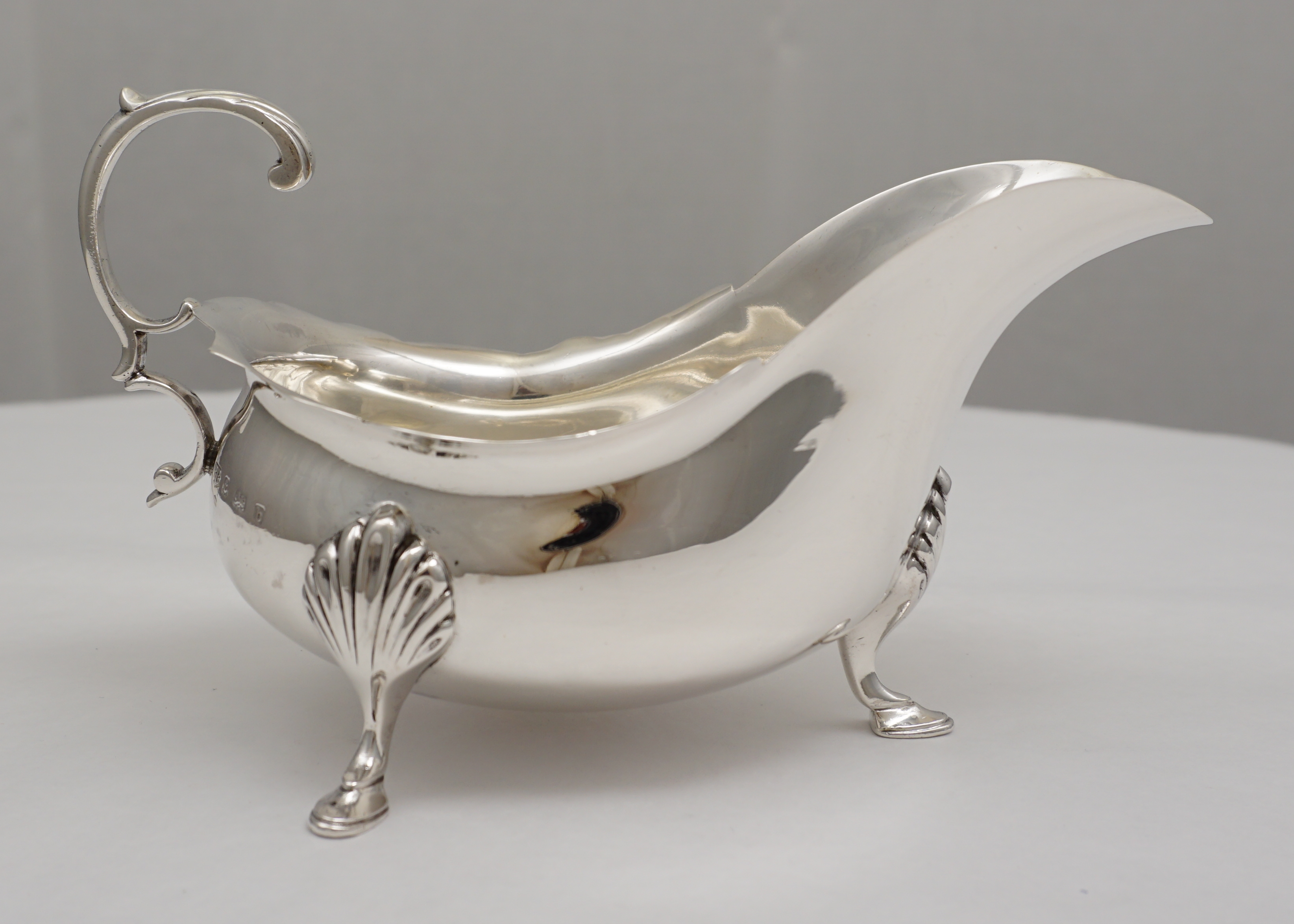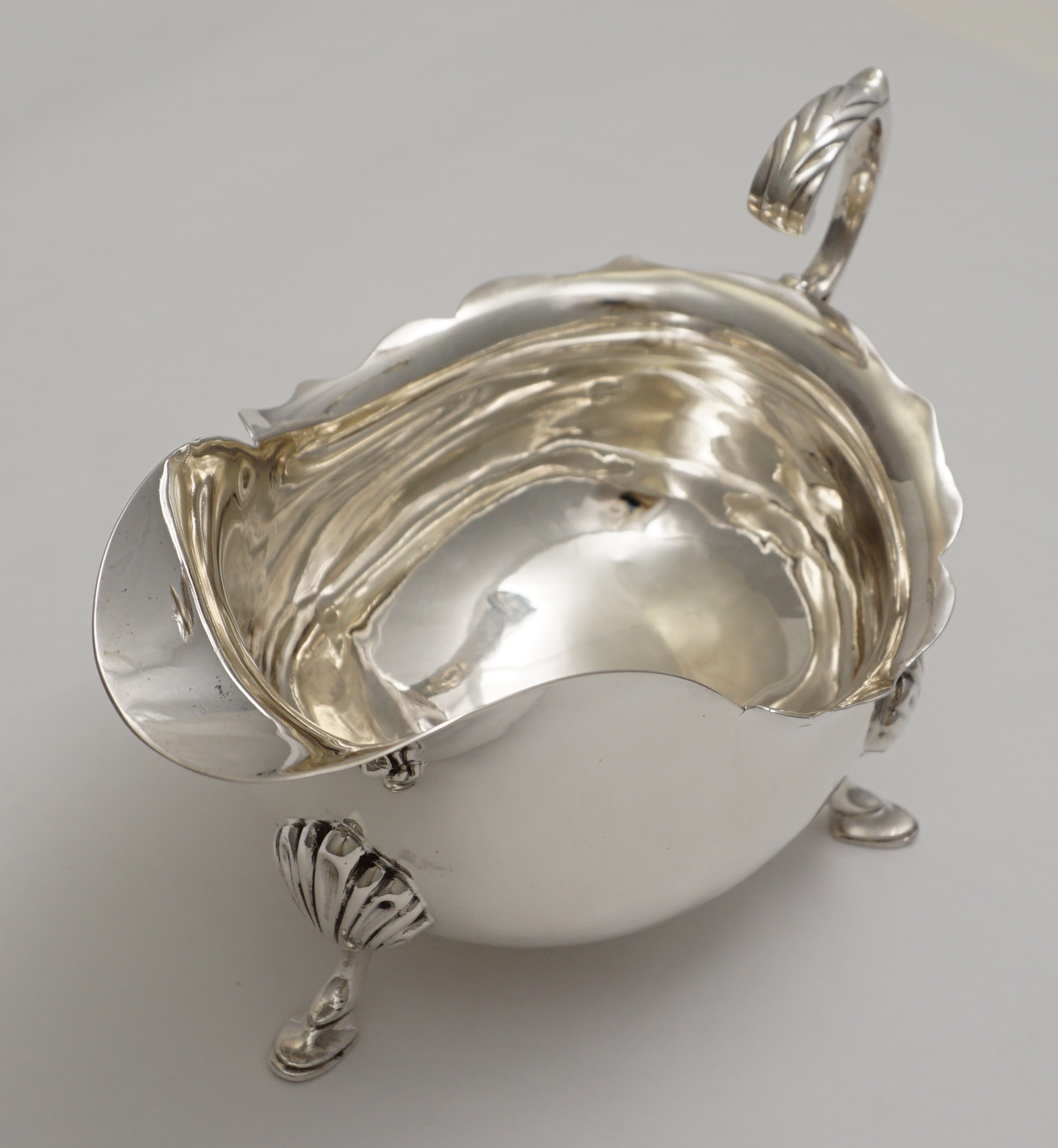DESCRIPTION | Good antique English Edwardian solid sterling silver sauce boat. |