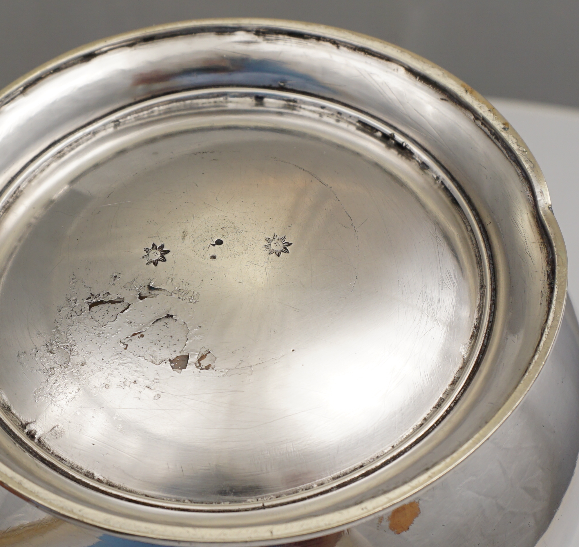 CONDITION | excellent, bump to foot rim, small patch of copper showing above and some plate flake to underside of base |