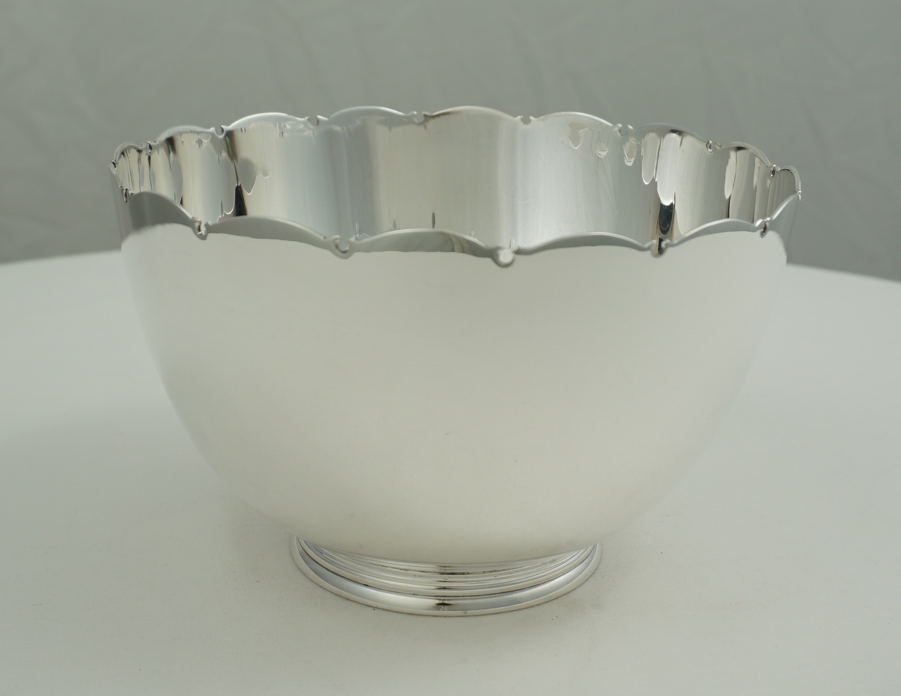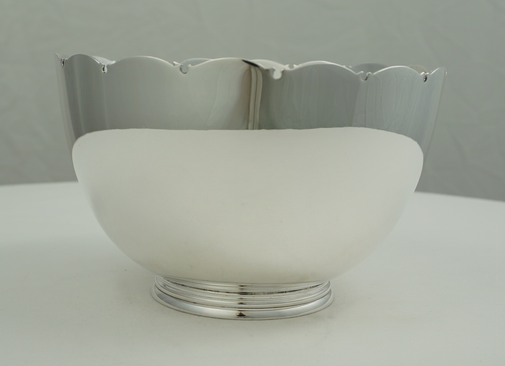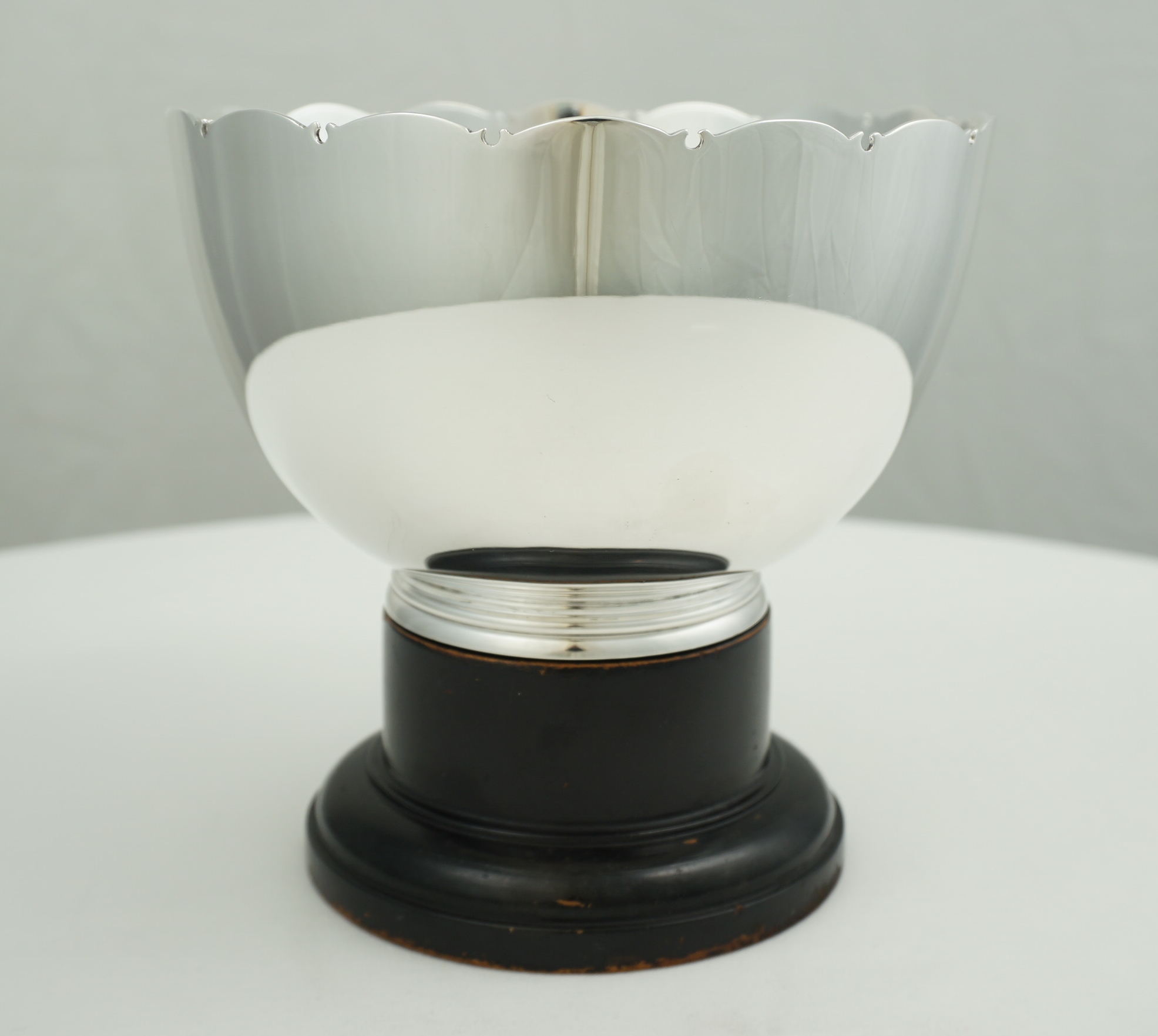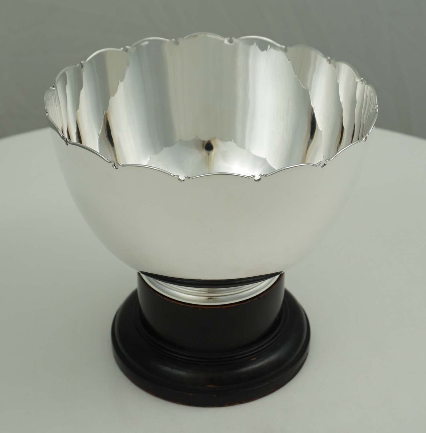 DESCRIPTION | Large and surprisingly heavy vintage Irish solid sterling silver bowl. With the addition of a wire frame it would become the perfect rose bowl and with a plinth would become the perfect presentation piece. The silver is more than thick enough to take an engraving and I have found an ebonised plinth that although much older does work quite well. The plinth can be included free of charge should you wish but is quite heavy so will add to international postage. |
