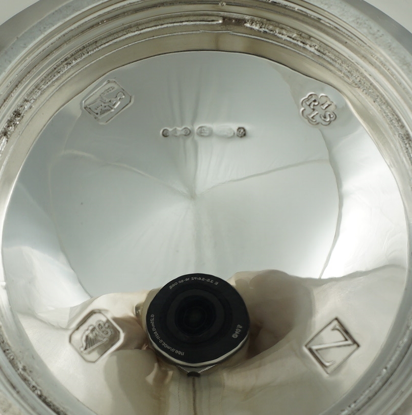 CONDITION | excellent, no bumps, no erasures, no repairs, mirror polished inside and out so an impossible form to image without plenty of odd reflections, mostly the black camera lens |