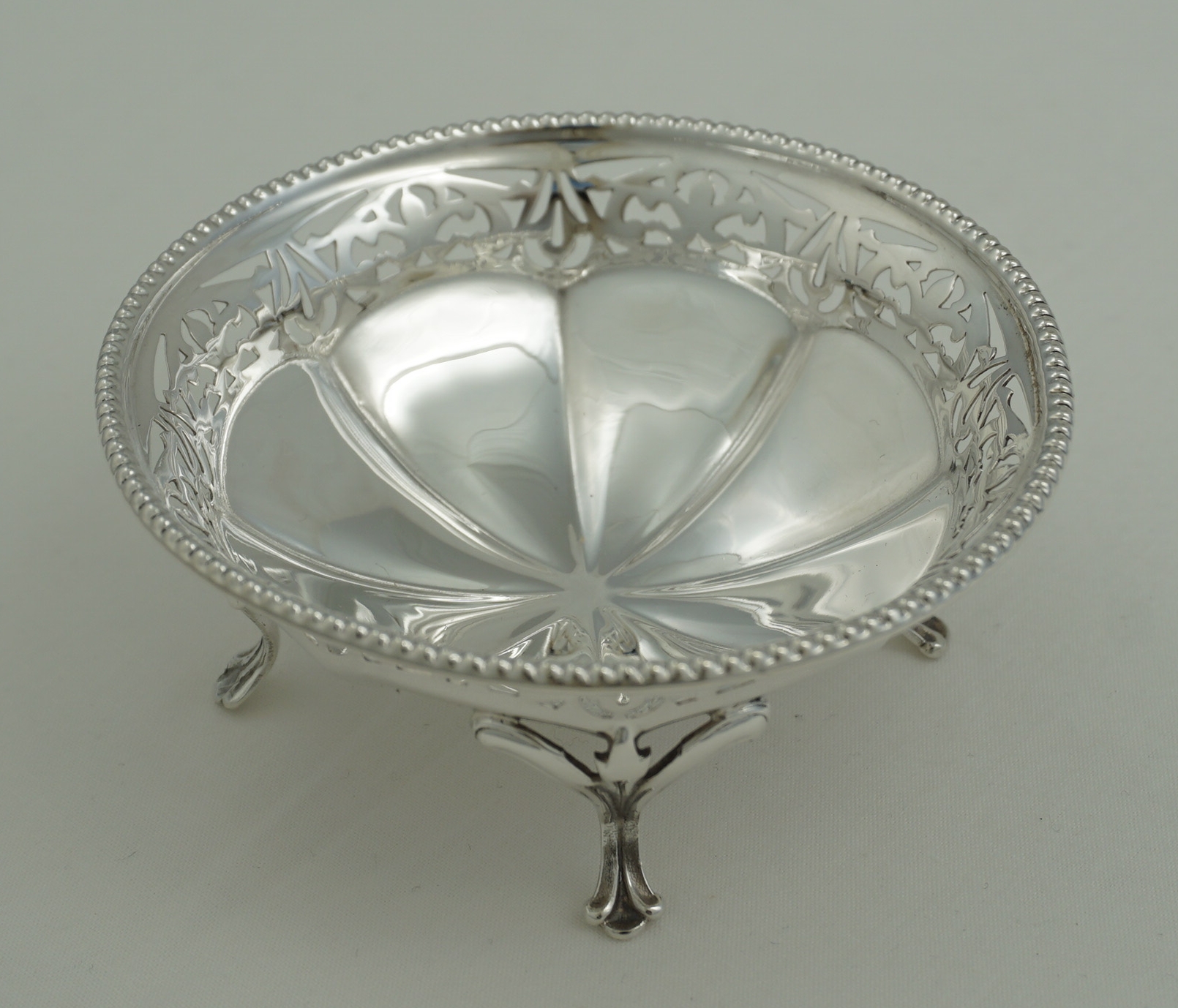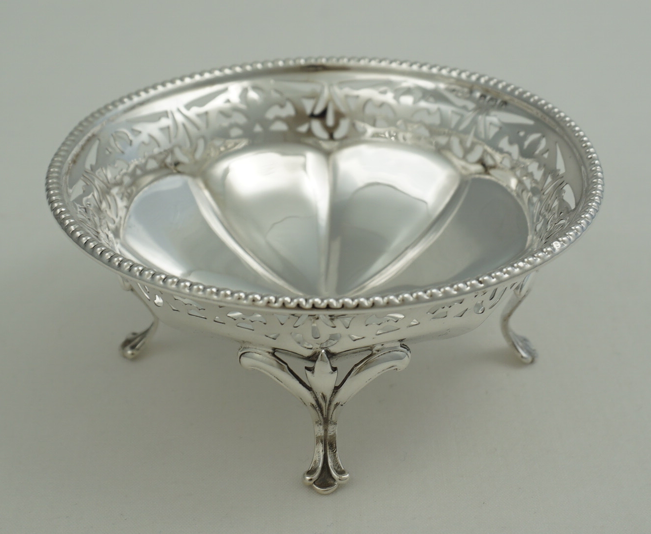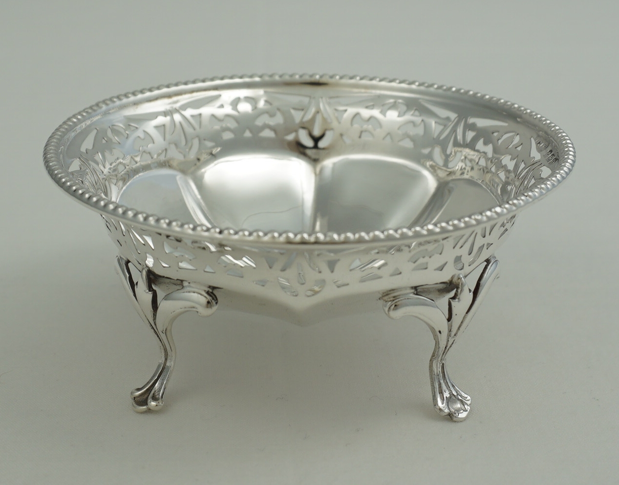 DESCRIPTION | Pretty little vintage English solid sterling silver pierced dish. |