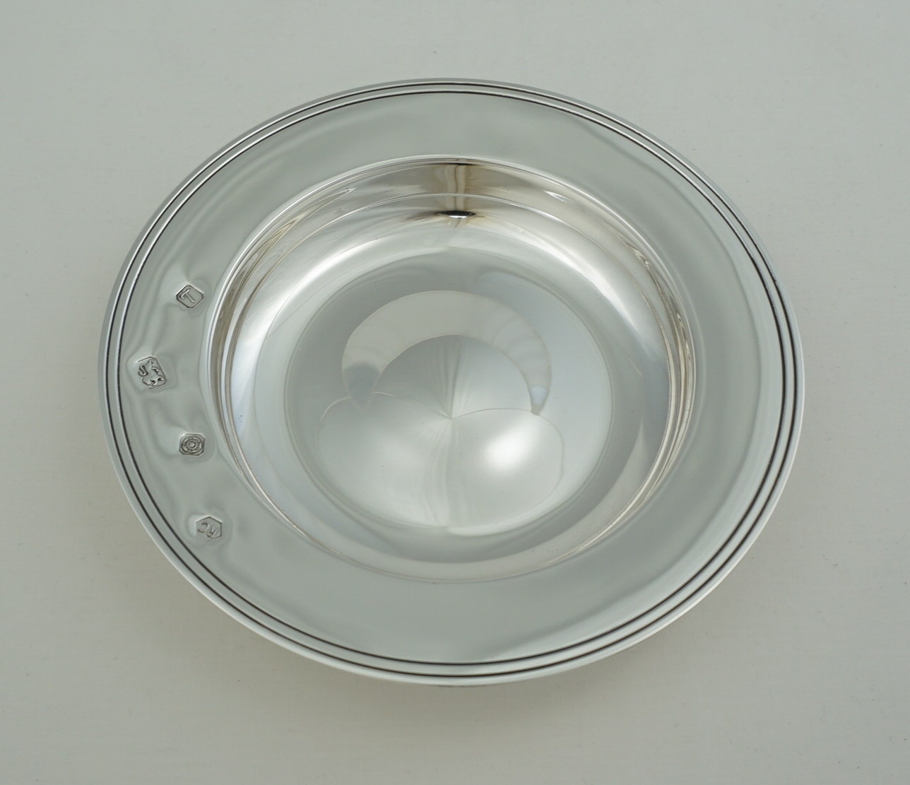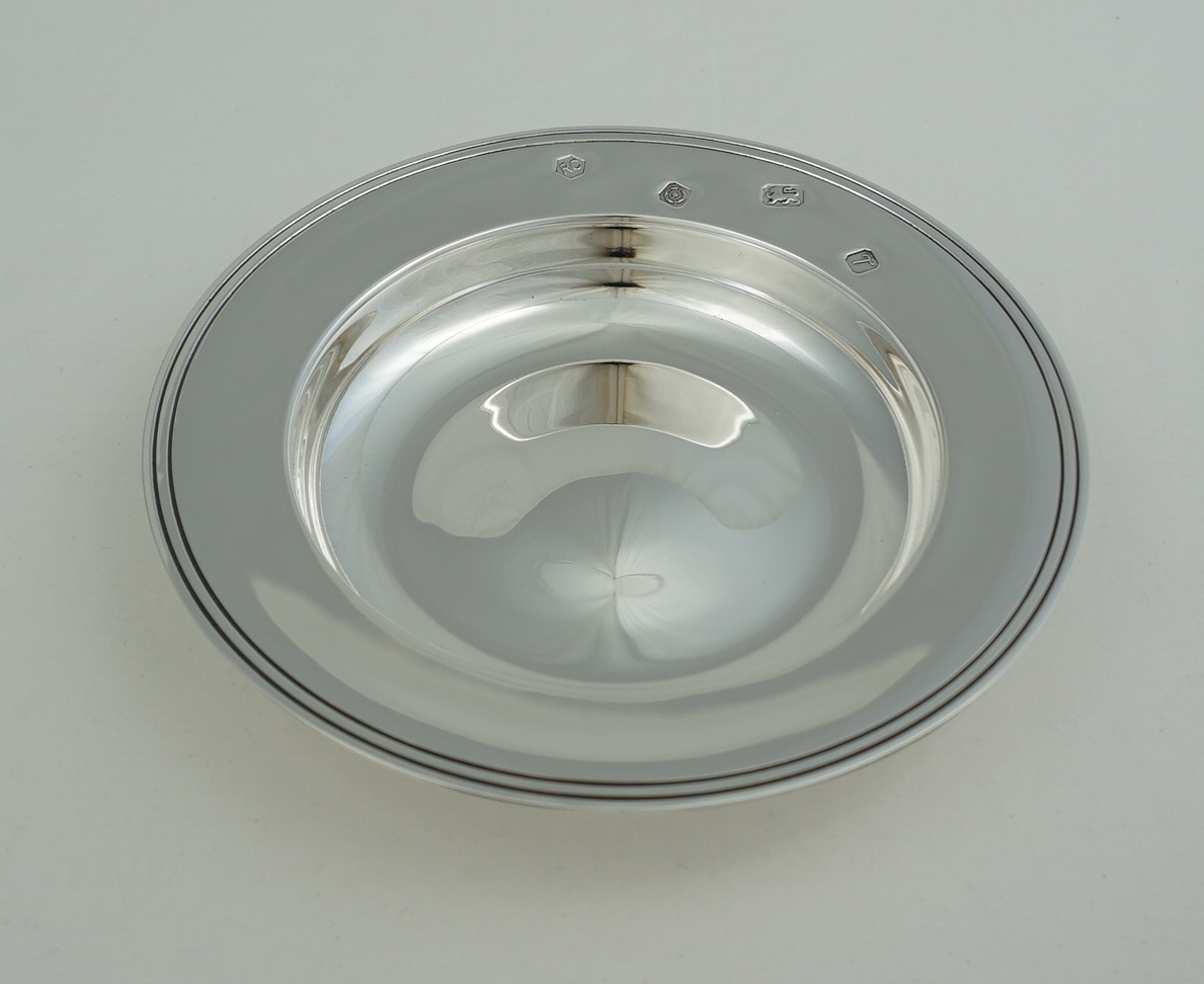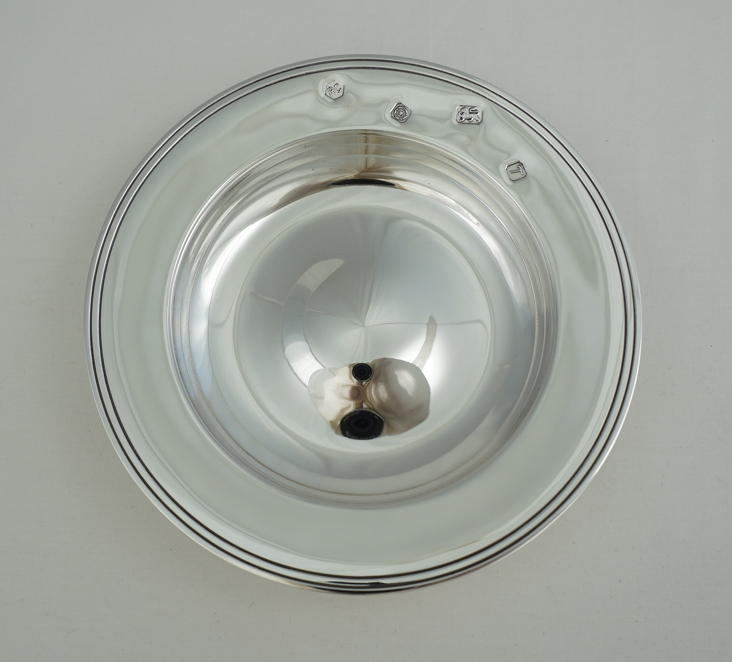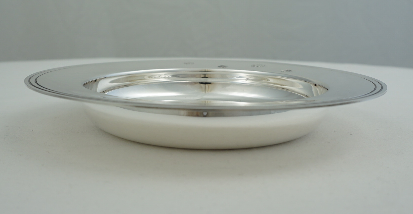 DESCRIPTION | Good and heavy vintage English solid sterling silver 'Armada' dish with no engraving or erasure. |