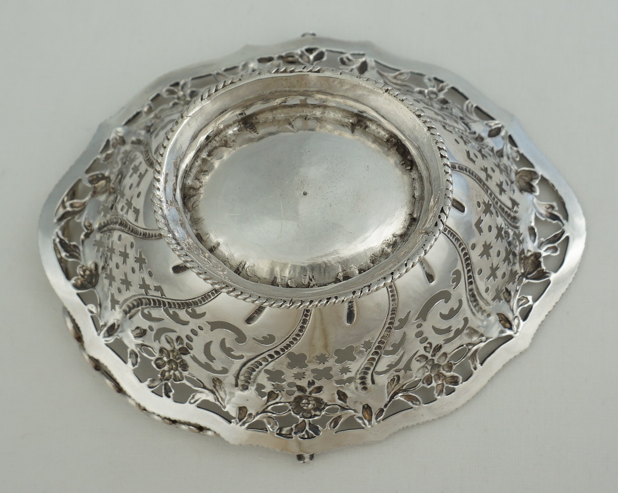 SILVERSMITH | Thomas Foster, specialist maker of pierced baskets. The 'F' is very rubbed but Thomas's 'T' and position of pellet are distinctive. |