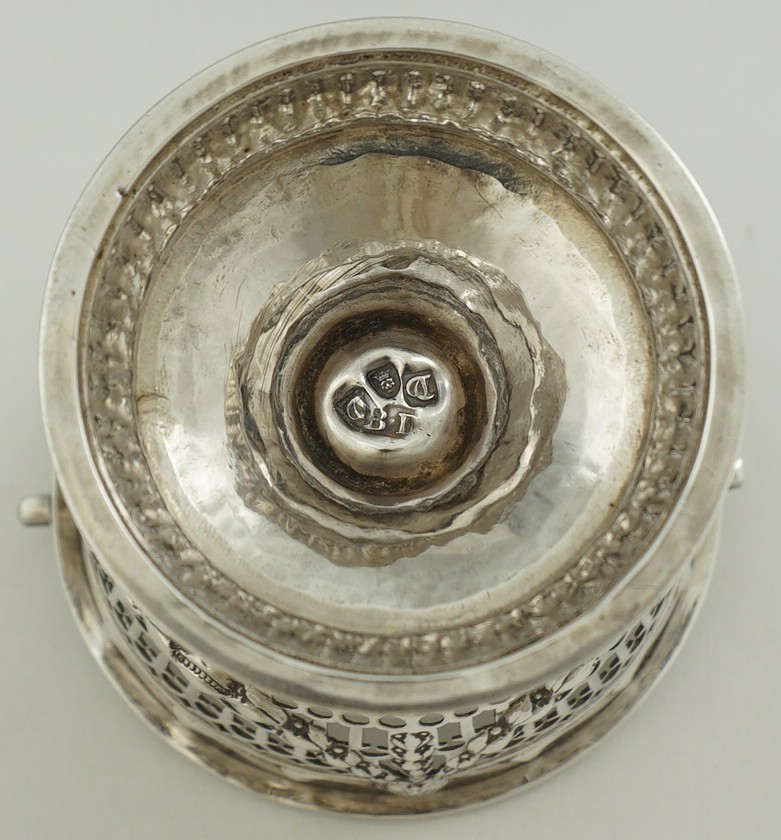 CONDITION | excellent, beautiful piercing, good hinge action, no wear, no repairs, thick metal, little downwards bump to the top rim at one handle hinge that I think best left alone. Odd internal reflections to the underside of the pedestal base around the hallmarks in the last image give the appearance of damage/repair when actually this area is perfect, exactly as it should be. |