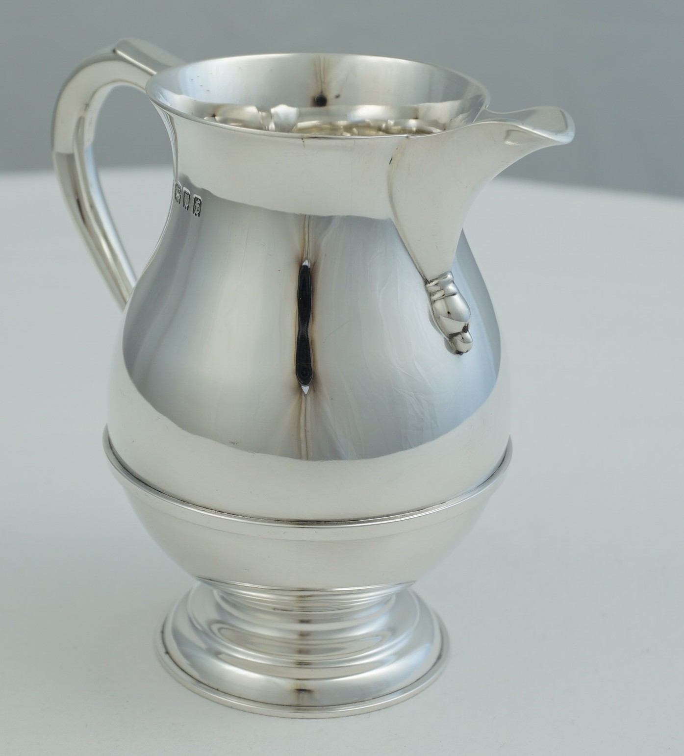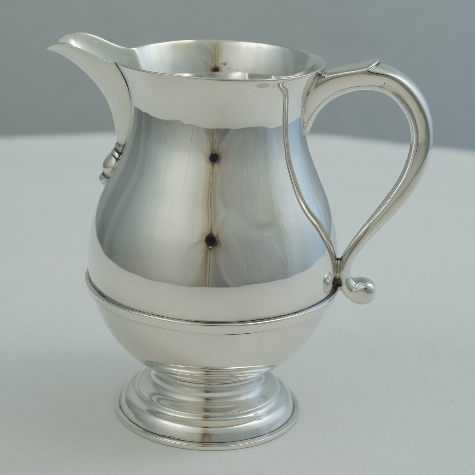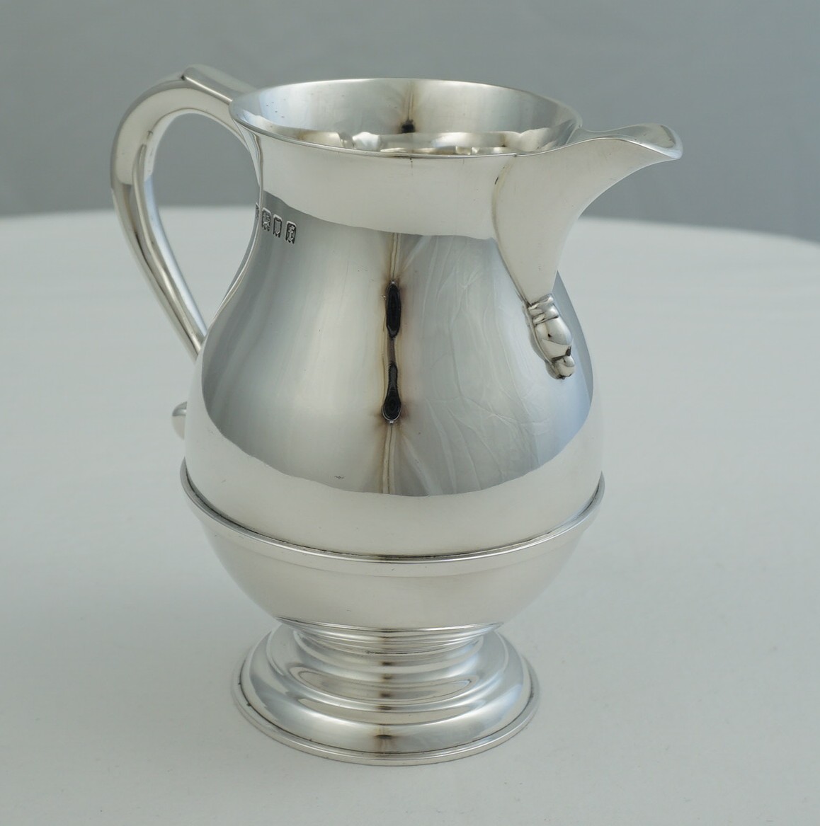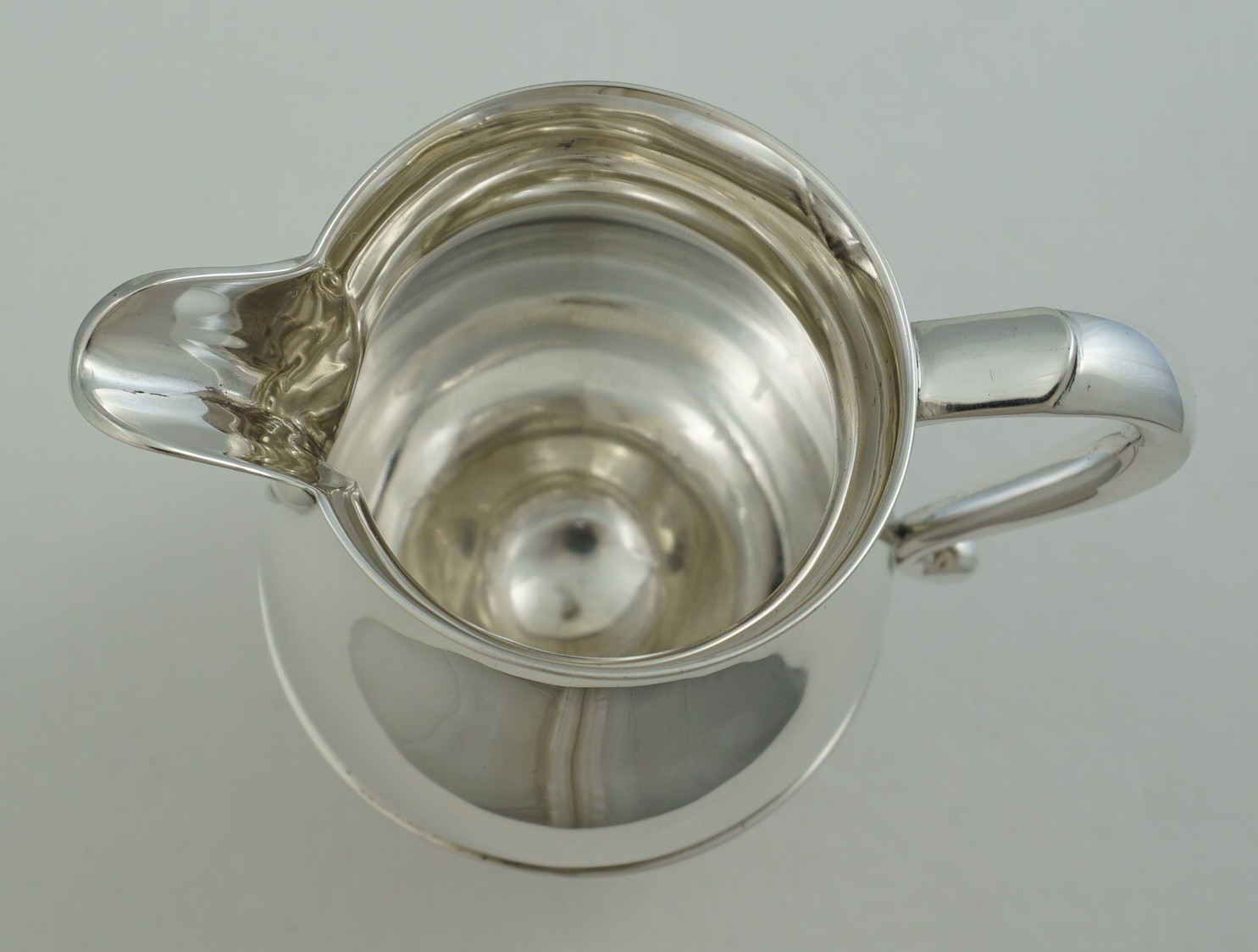 | DESCRIPTION | High quality antique English solid sterling silver reproduction of an early Georgian style milk or cream jug. |