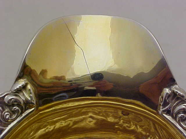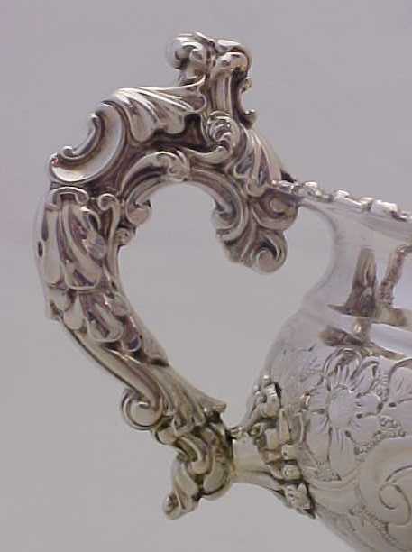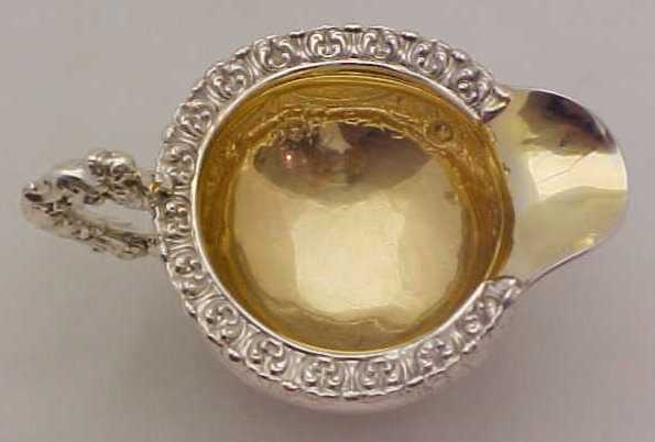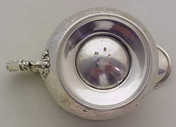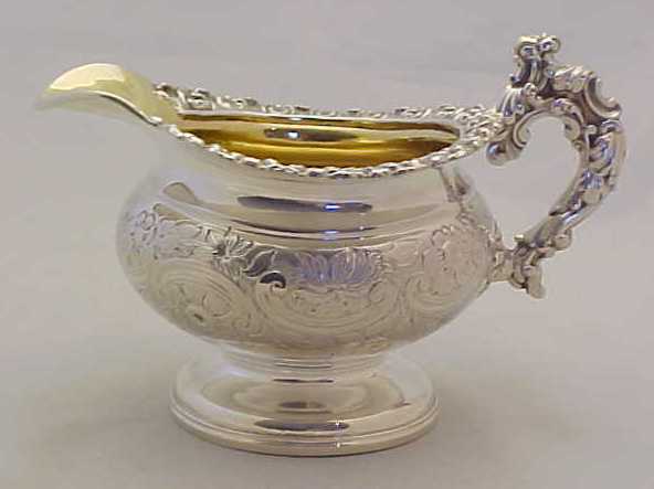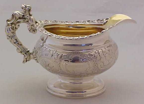 Georgian silver cream jug with a gilded interior and a blank cartouche. |