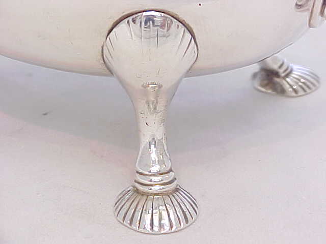 micro split to the the gadroon border, a well executed repair to a rim split one side of the top handle joint and a tiny scratch mid body, all shown below. |