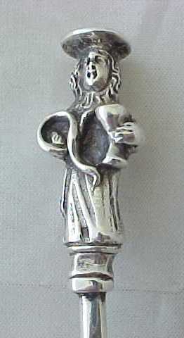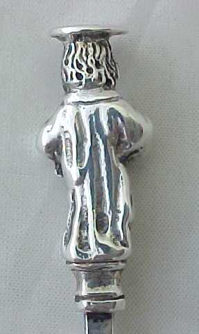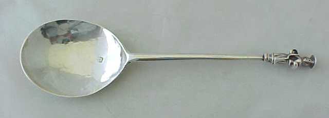 The first two pieces were bought from a major London auction house during 2008. To be fair, the catalogue descriptions were ambiguous rather than inaccurate. I know that you, most knowledgeable reader, would never be caught out by such items and so I write this short piece for those without the benefit of your wisdom. These two spoons are so similar that they could have been altered by the same hand. The first is an apostle spoon with a slightly too large St. Peter terminal. It is 18 centimetres long and weighs 41 grams. The second is a seal top, 17.1 centimetres long and weighs 43 grams. Both bowls are a bit on the small side with hammer marks to the back increasing towards the tip. The hallmarks are genuine but in the wrong place for apostle and seal top spoons. You could expect to see one within the bowl near the stem joint and up to three to the back of the stem. The hallmarks on the apostle are for London 1756, maker Robert Perth. The seal top is London 1771 with a maker's mark too pinched to read. These dates put the apostle about one hundred years out of period and the seal top nearer one hundred and fifty. Both spoons are in fact conversions from Hanoverian pattern table spoons. The terminals soldered on and bowls reshaped. No way of telling when the work was carried out other than to say certainly before 1983 as Ian Pickford discusses both of these spoons in his excellent book 'Silver Flatware English, Irish and Scottish 1660-1980' on page 70, figure 67. |