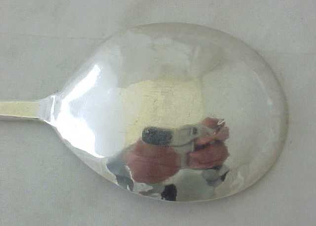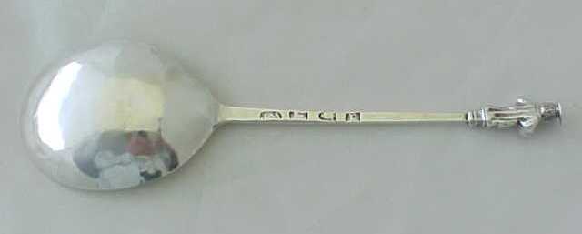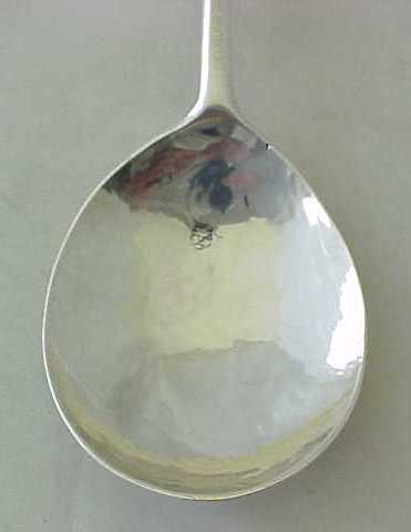 This third piece, from the collection of a customer, has many similarities to the two above and one significant difference. The apostle terminal is similar and could have been cast by the same hand as the two above. The reshaping of the bowl is poor with crude hammer work and the sides and tip have been left too thin so perhaps a different hand involved here. The donor spoon was again a Hanoverian table spoon, this time a William Penstone III, London 1770. The Leopard's Head Crowned punch to the bowl has been struck a bit low in the bowl and is a fake. The mark is too crisp and I would have expected a cross to the centre of the crown. The punch clearly shows to the back of the bowl and so was struck after the hammer work. If it were original, the silversmith would have polished this out after the assay. Although the 1770 marks are genuine, the later mark turns this conversion into a fake. |