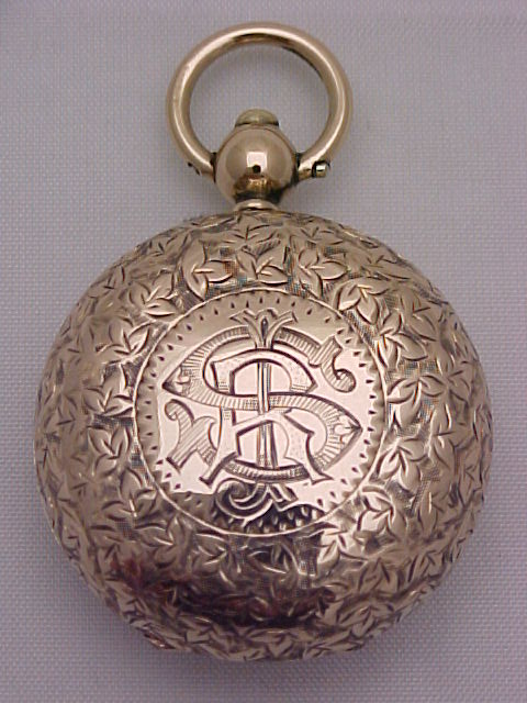 Victorian nine carat gold large sovereign case with foliate engraved decoration and a monogram to the lid. |