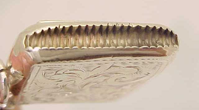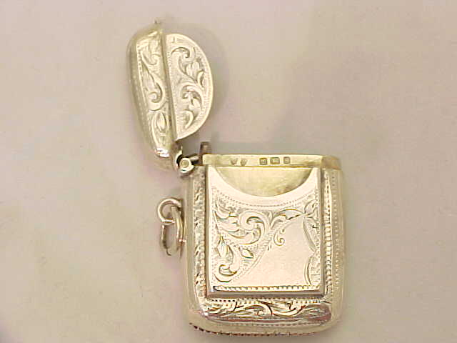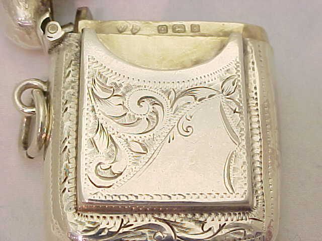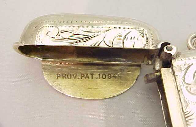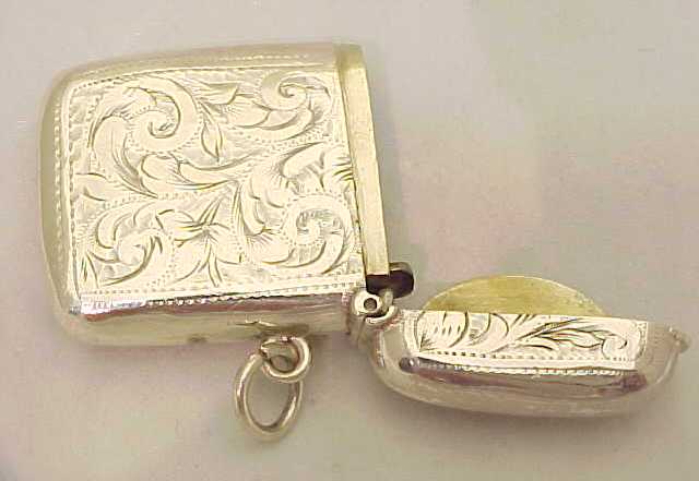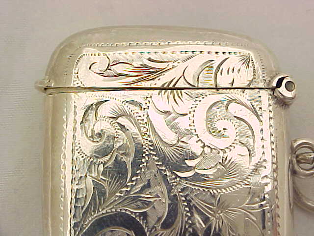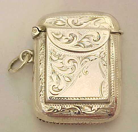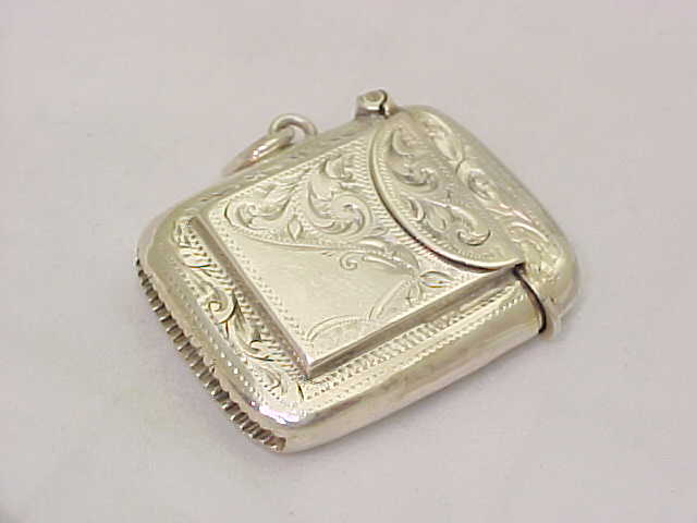 Very scarce Edwardian silver vesta stamp case combination with engraved foliate decoration, a blank cartouche, silver strike plate and a gilded interior. The patent, number 10944, for this design was granted in full to W. Light on the 10th May 1906. |