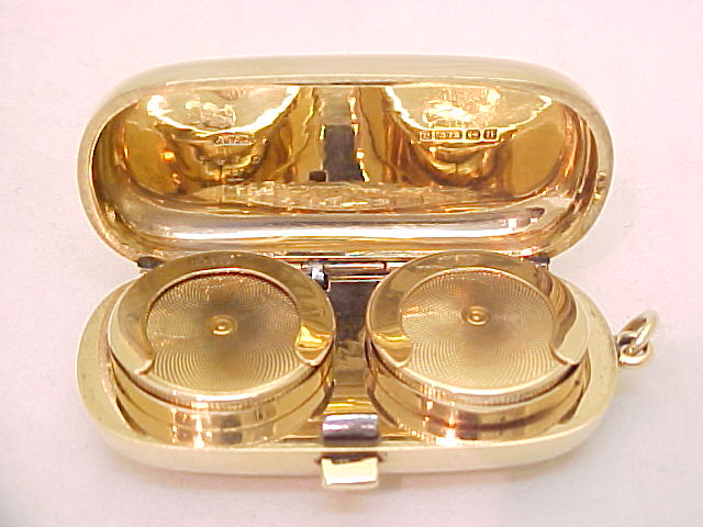 Nine carat gold double sovereign case, initial engraved and correctly hallmarked throughout. |