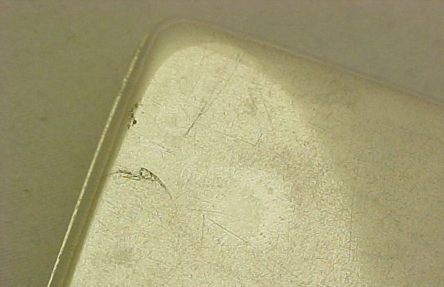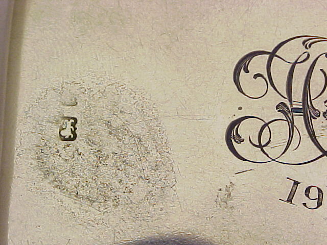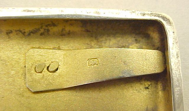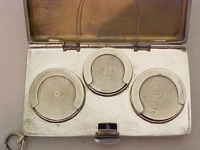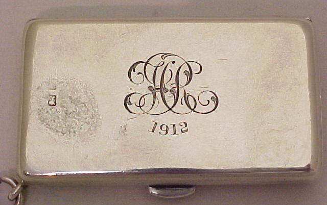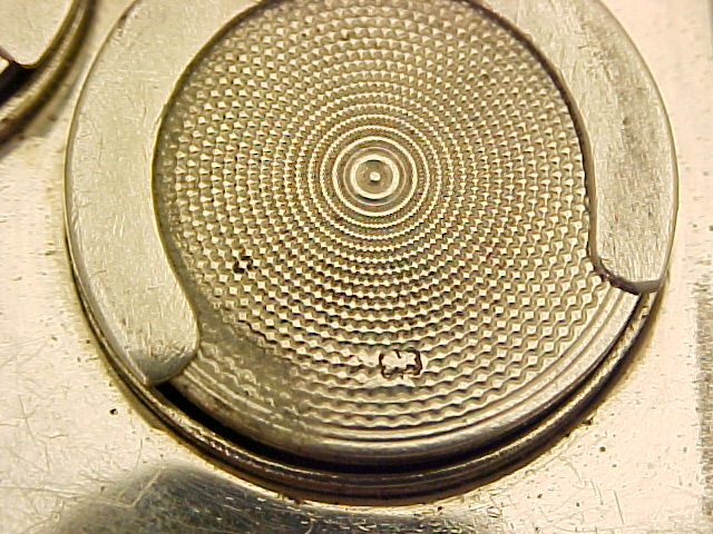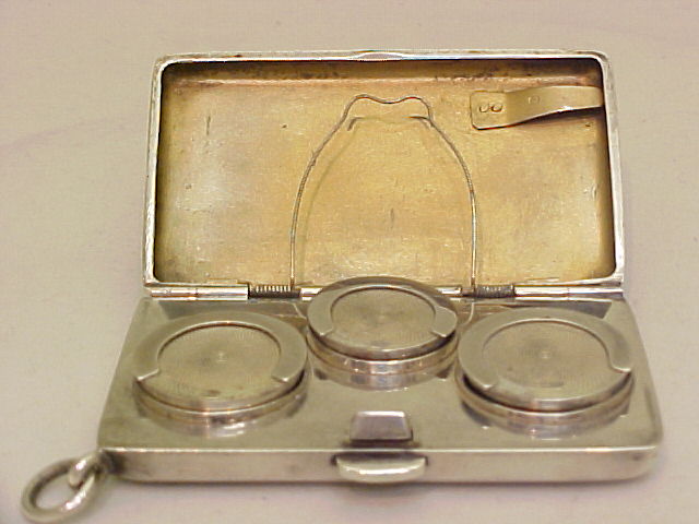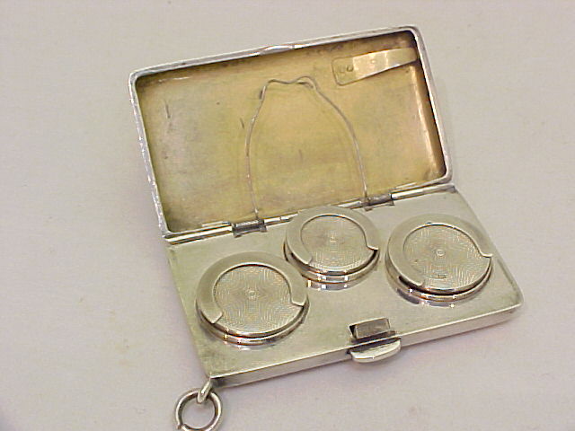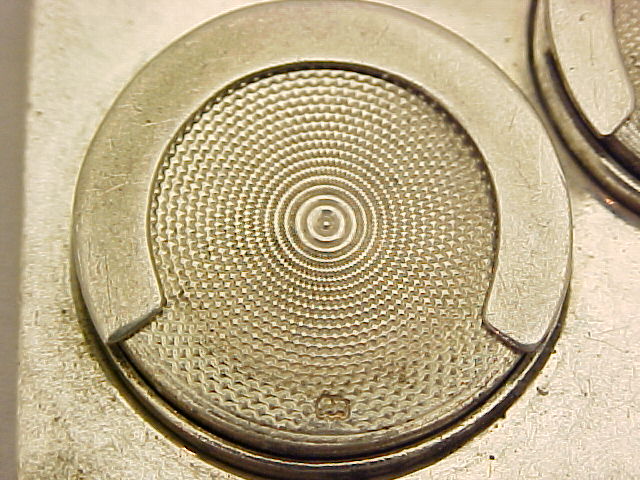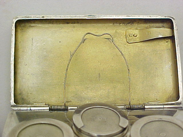 patch of surface attack to the silver lid to the left of the monogram, most likely caused by prolonged contact with rubber, could be polished out for no charge. |