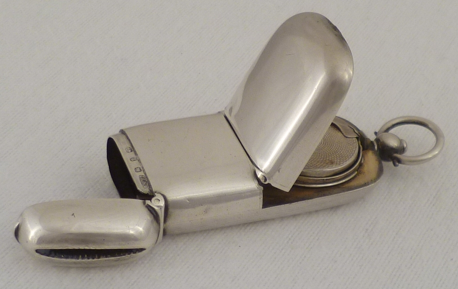 Good Victorian silver sovereign case and combined vesta case with large suspension loop and a gilded interior. Correctly hallmarked with a full set to the body and partials throughout. |