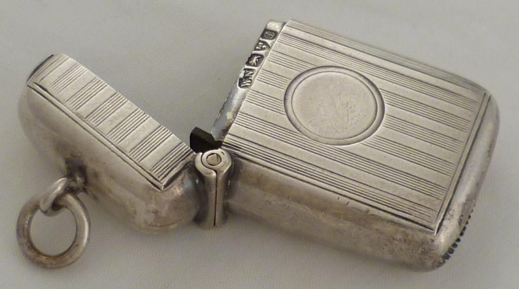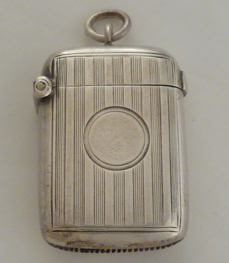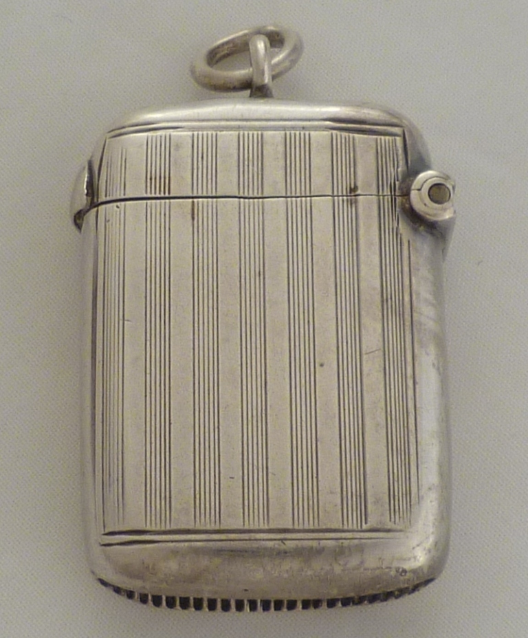 DESCRIPTION | Small Edwardian silver vesta case with engraved decoration, silver strike and a blank cartouche. |