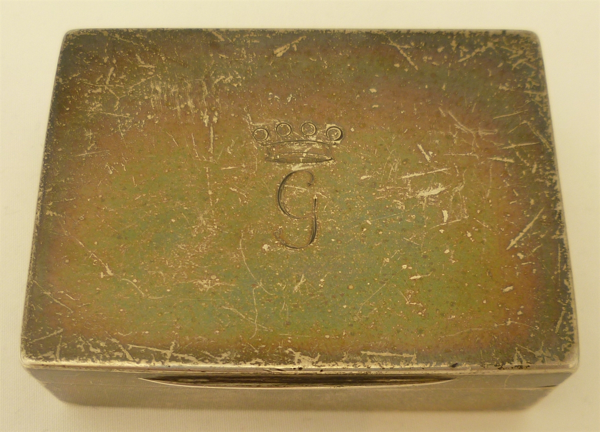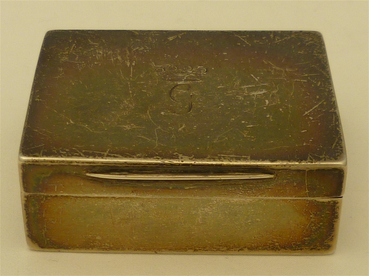 DESCRIPTION | Heavy Victorian solid sterling silver vesta box engraved 'G' below a baron's coronet and with a silver strike beneath the lid. Comes with a full one hundred and twenty years of patination and the offer of a free professional clean should you wish. The internal surfaces are/were gilded but much of this will be lost if a thorough clean and polish is performed. Add £20 for a full internal re-gild. |