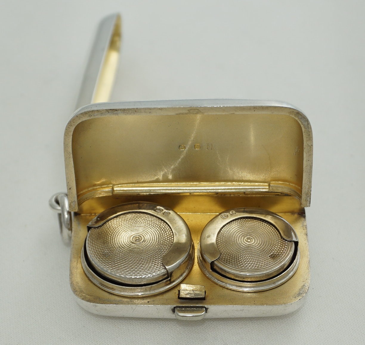 DESCRIPTION | Very good Victorian solid sterling silver vesta case cum sovereign case fitted for vestas, full and half sovereigns. Correctly hallmarked throughout, nicely sprung tables, no engraving or erasure and the gilding is still surprisingly good. |