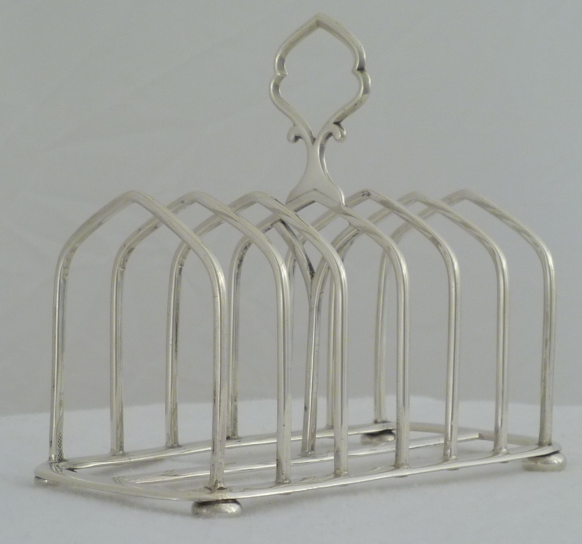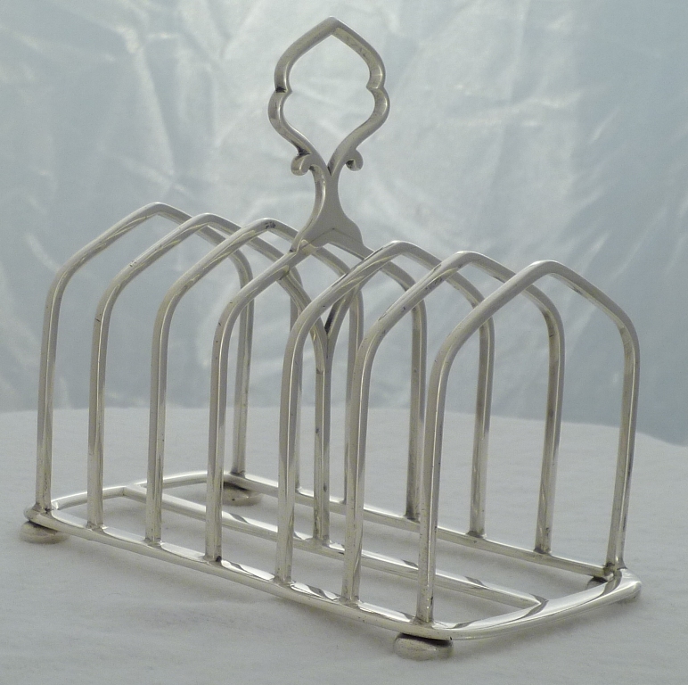 Finest quality Victorian silver 7-bar toast rack with bun feet. |