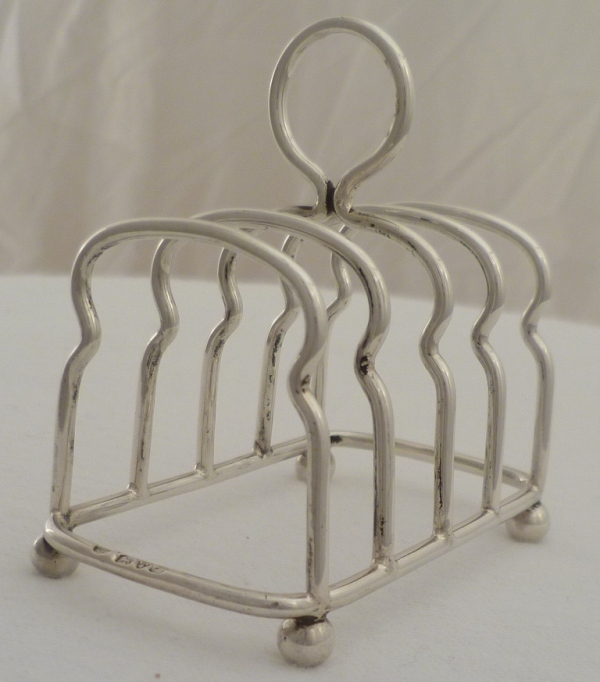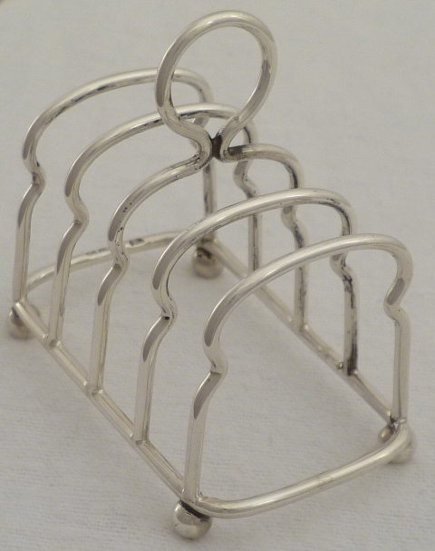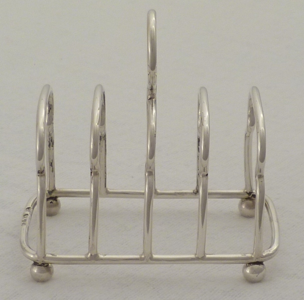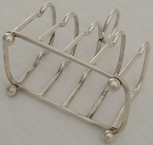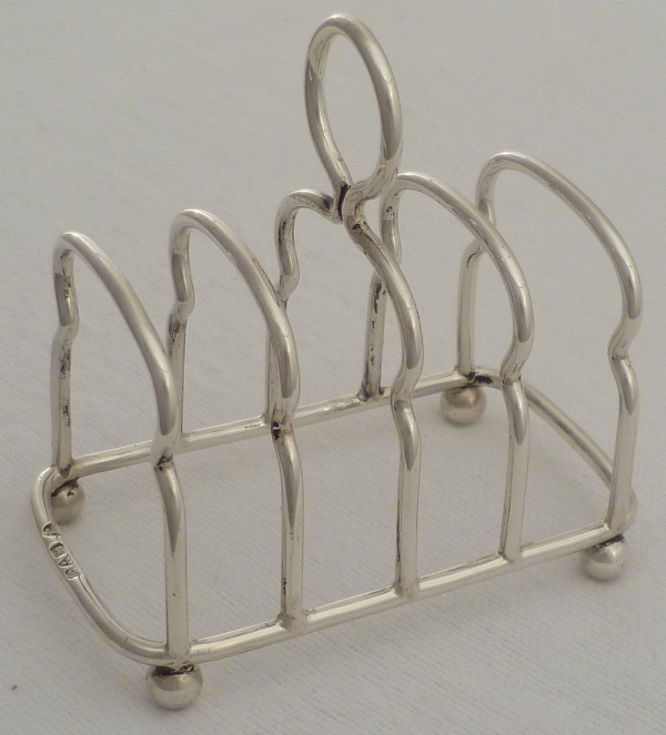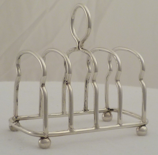 Hugely entertaining and functional yet diminutive 5-bar silver toast rack with the bars shaped as slices of toast. |