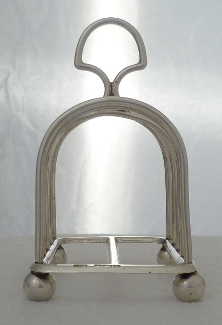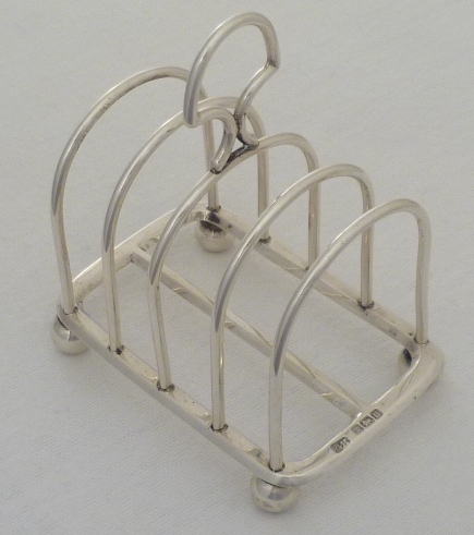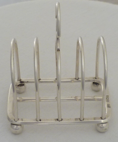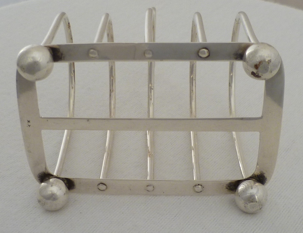 DESCRIPTION | 5-bar silver toast rack on four ball feet. |