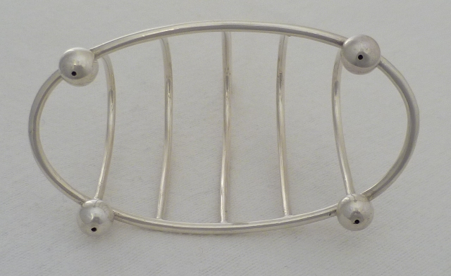 DESCRIPTION | 5-bar Victorian silver toast rack on four ball feet. |