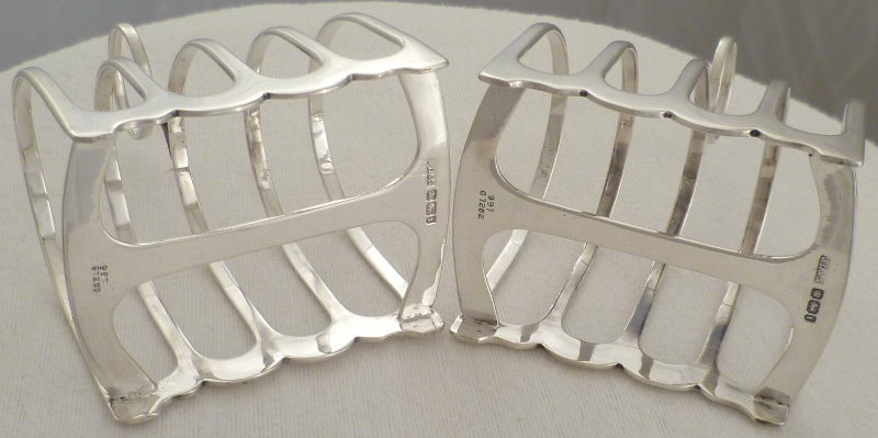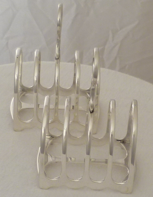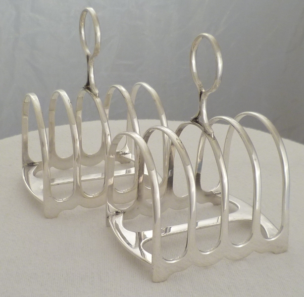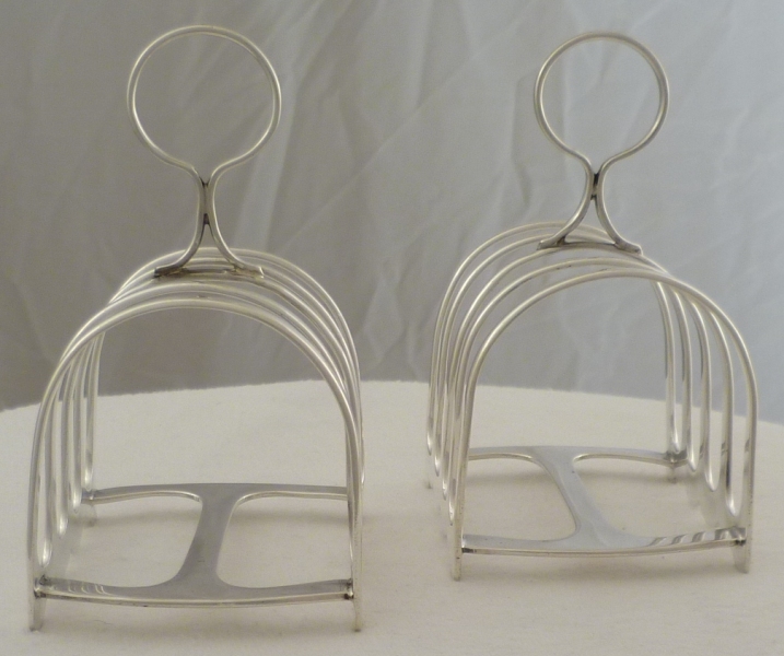 DESCRIPTION | Pair of useful Edwardian silver 5-bar toast racks with ring handles. |