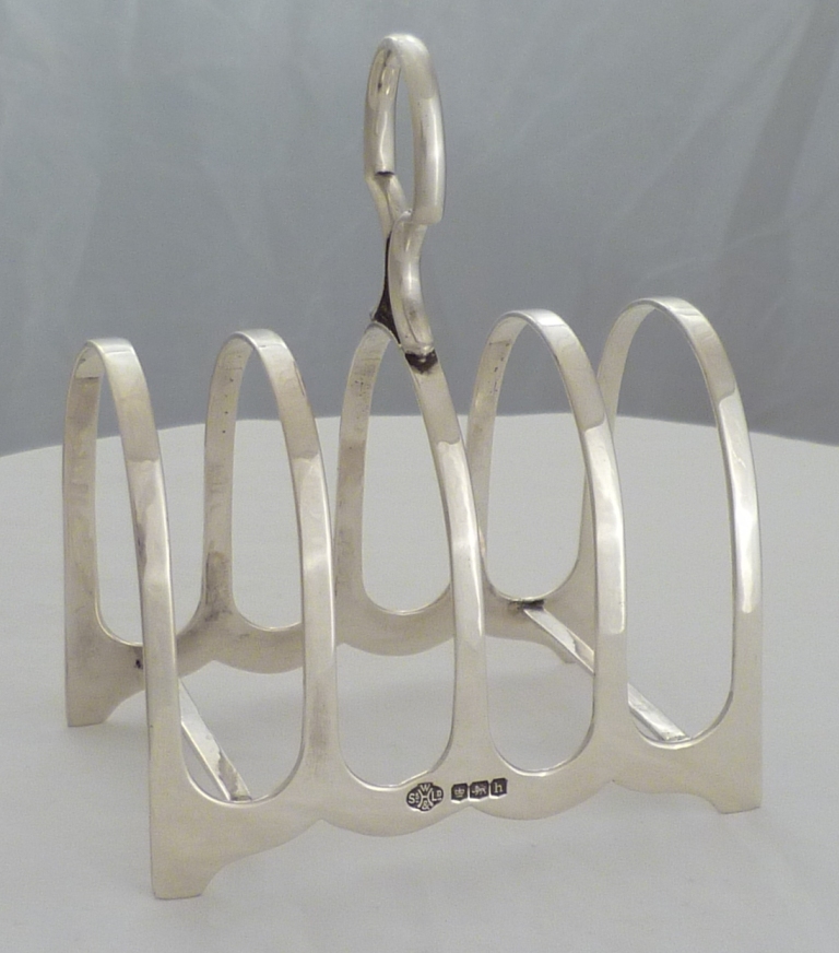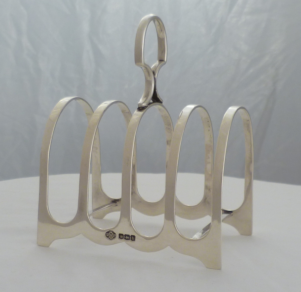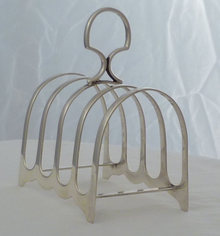 DESCRIPTION | Good silver 5-bar toast rack with a shaped handle. |
