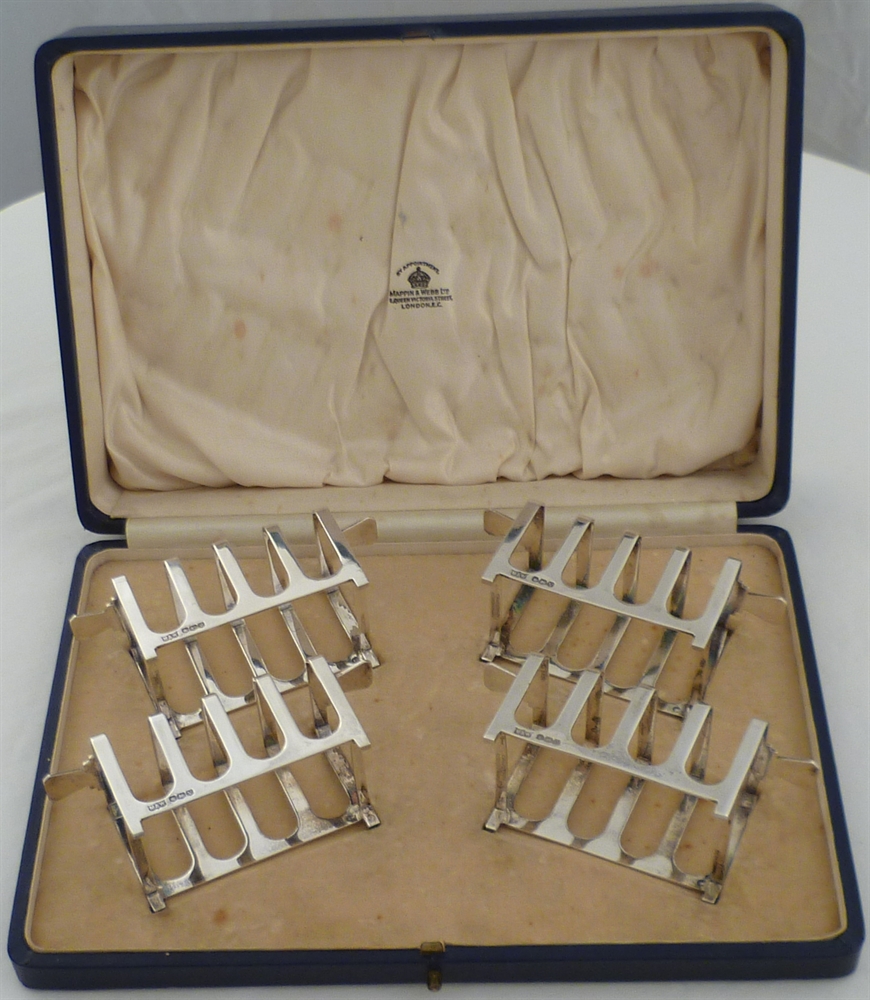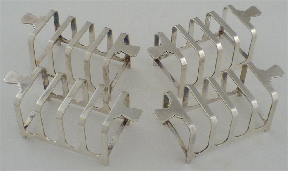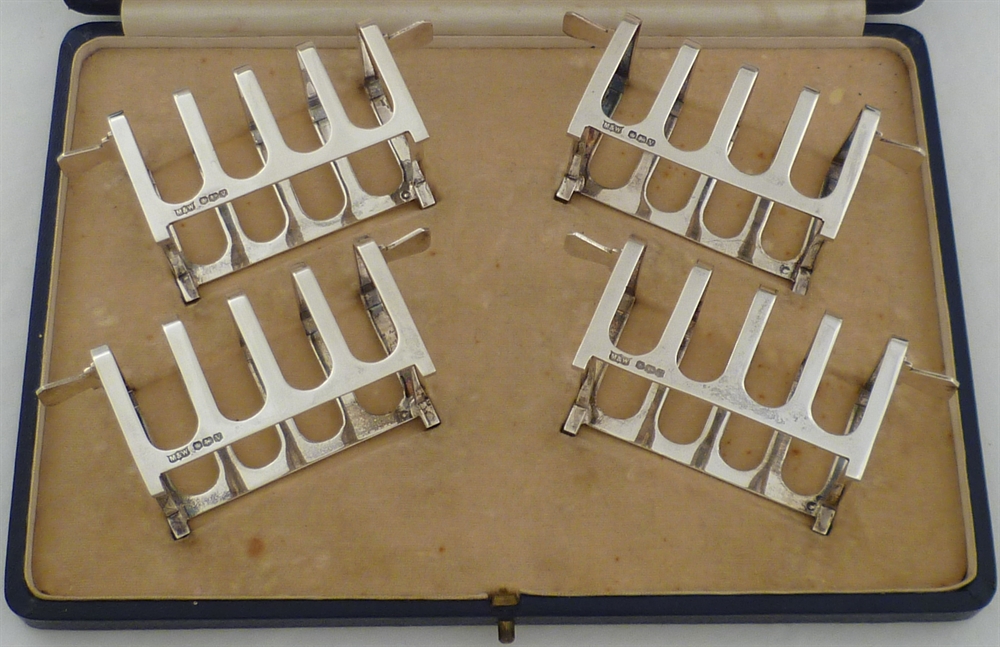 DESCRIPTION | Set of four Art Deco silver 5-bar toast racks contained within their original fitted case. |