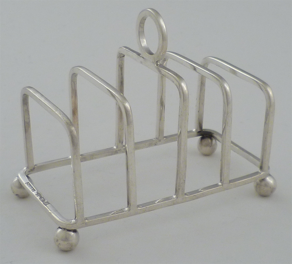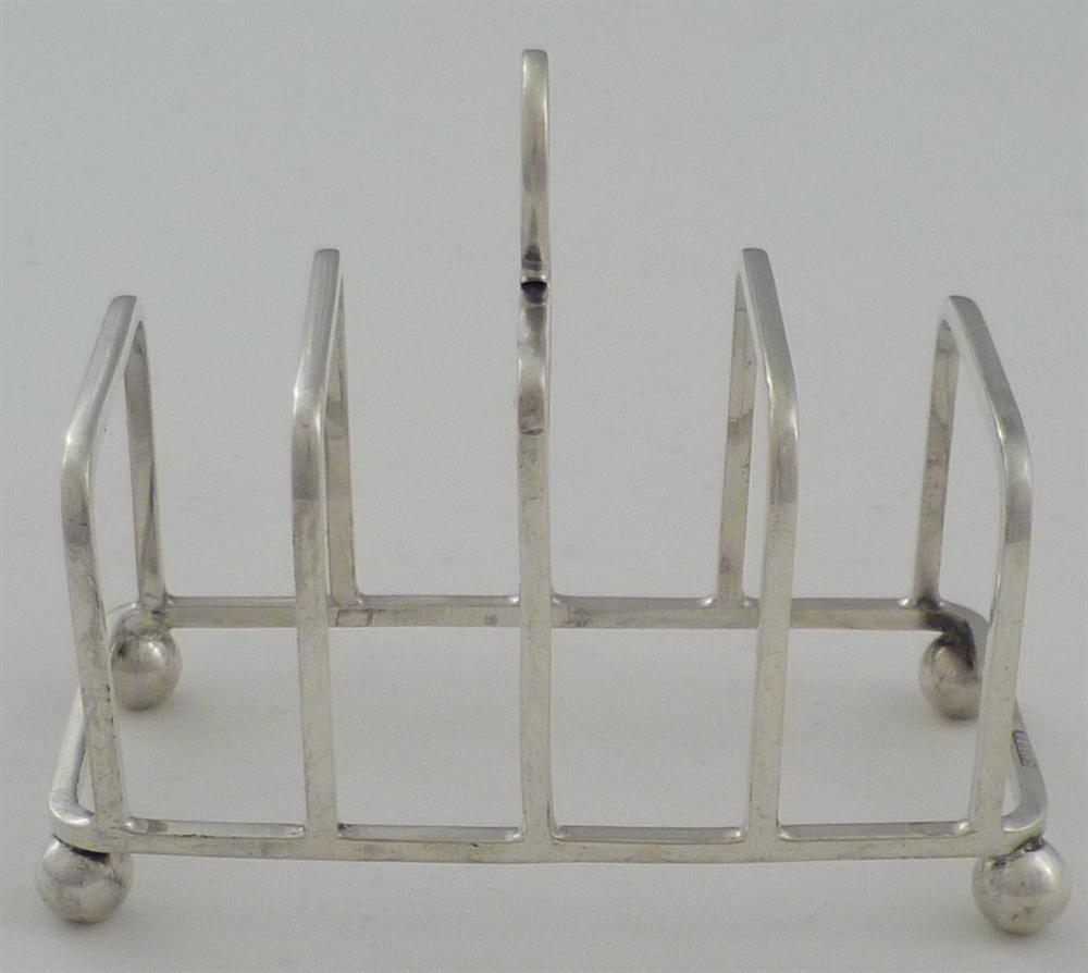 DESCRIPTION | 5-bar solid silver toast rack on four ball feet. |