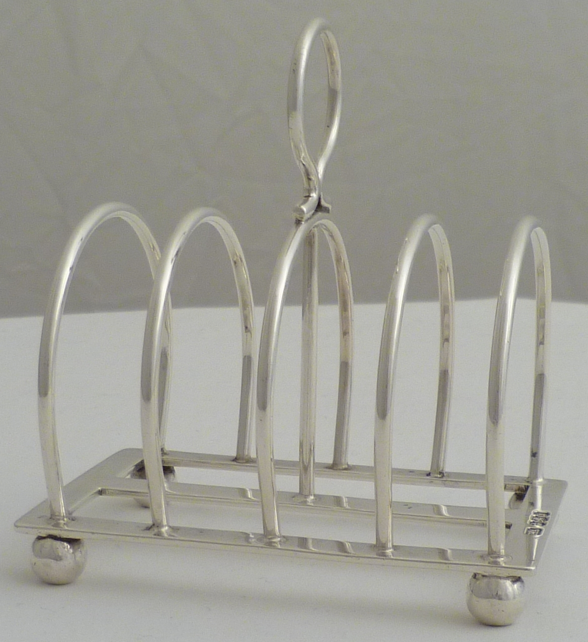DESCRIPTION | Victorian 5-bar solid silver toast rack on four ball feet. |