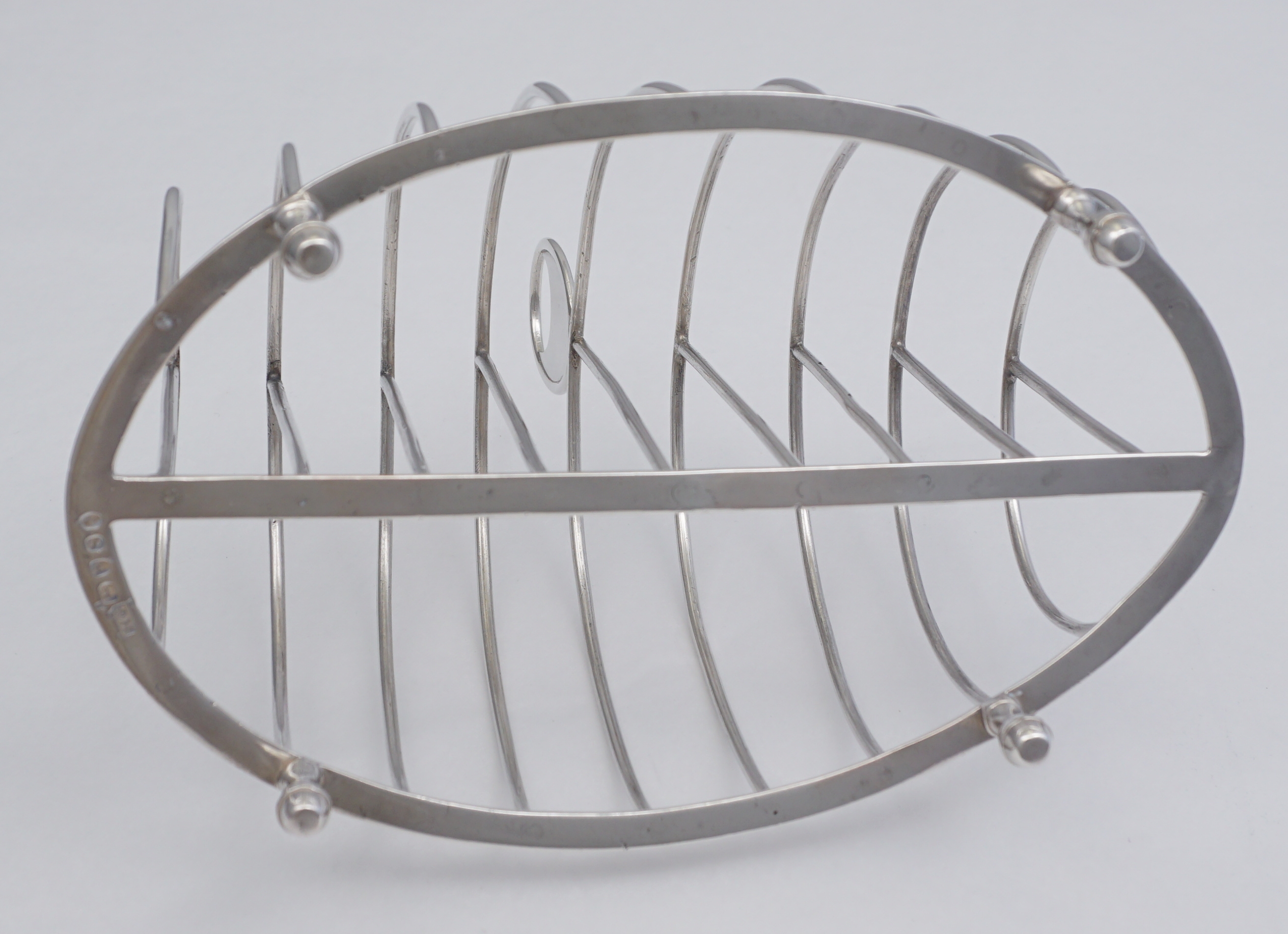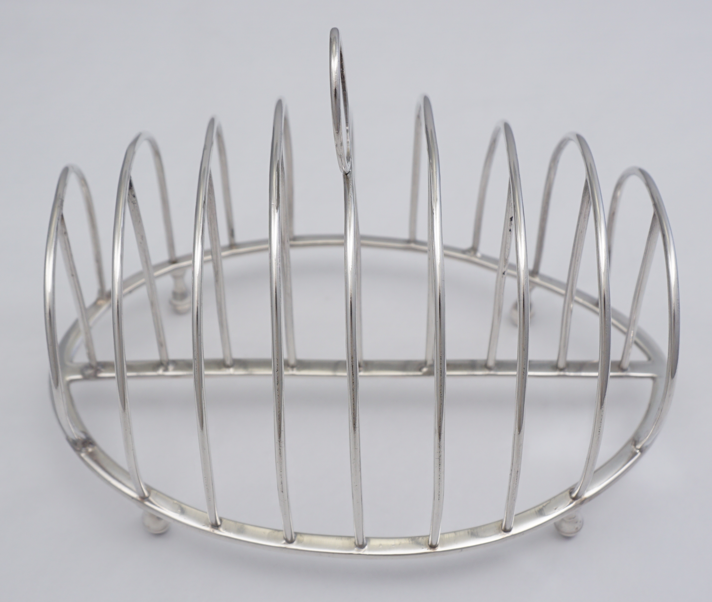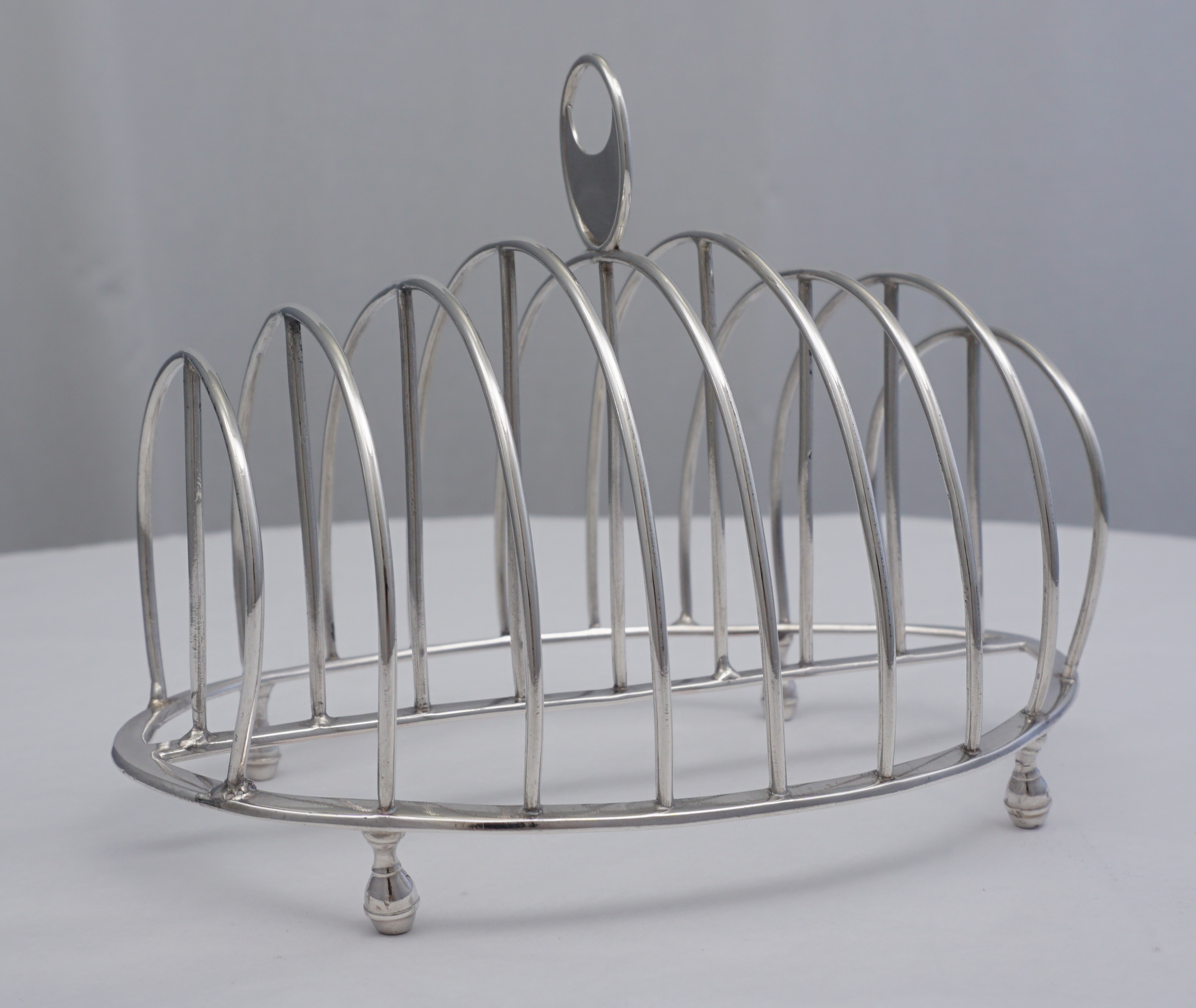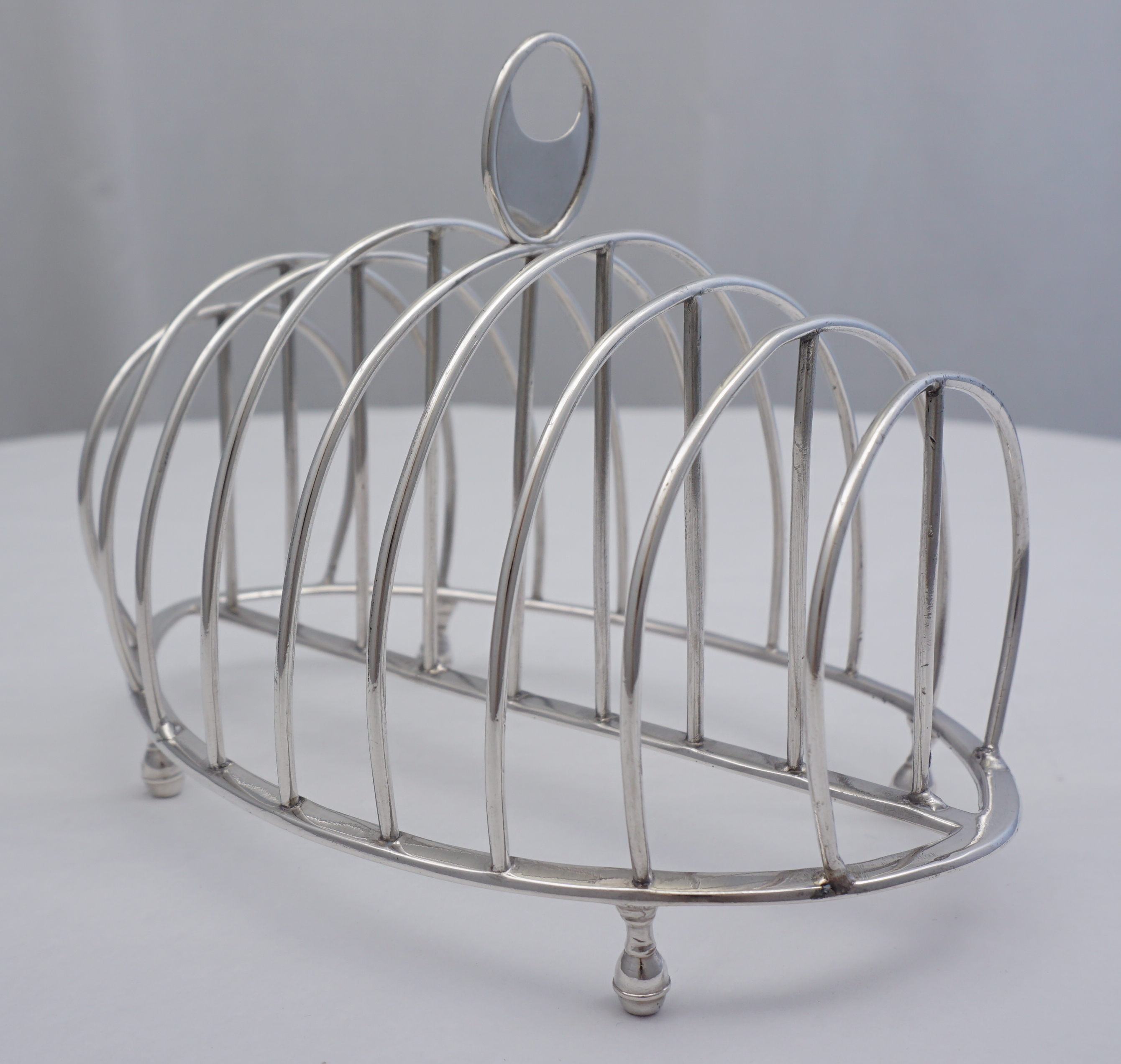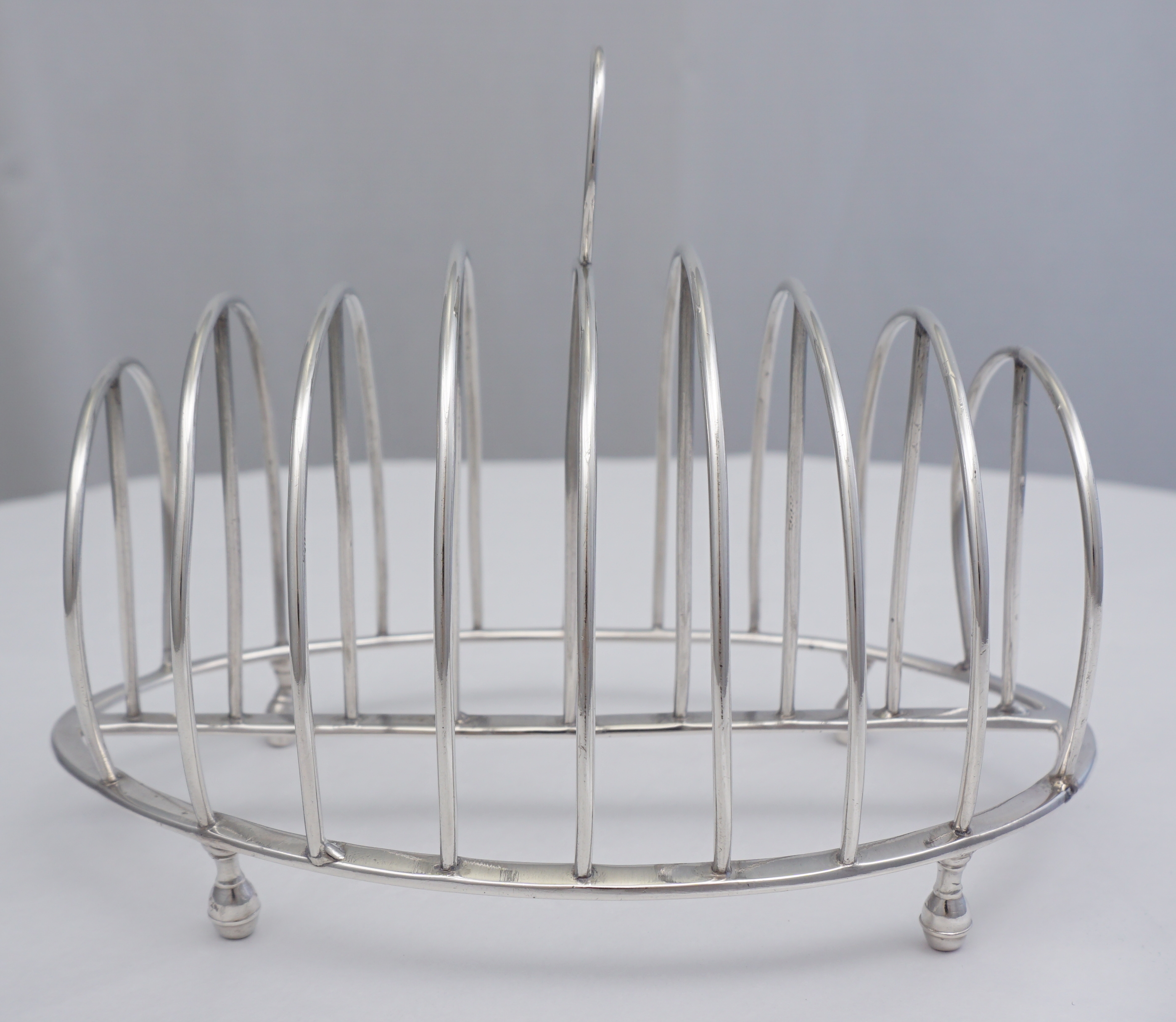 DESCRIPTION | Good and large antique English Georgian solid sterling silver 9-bar toast rack. |