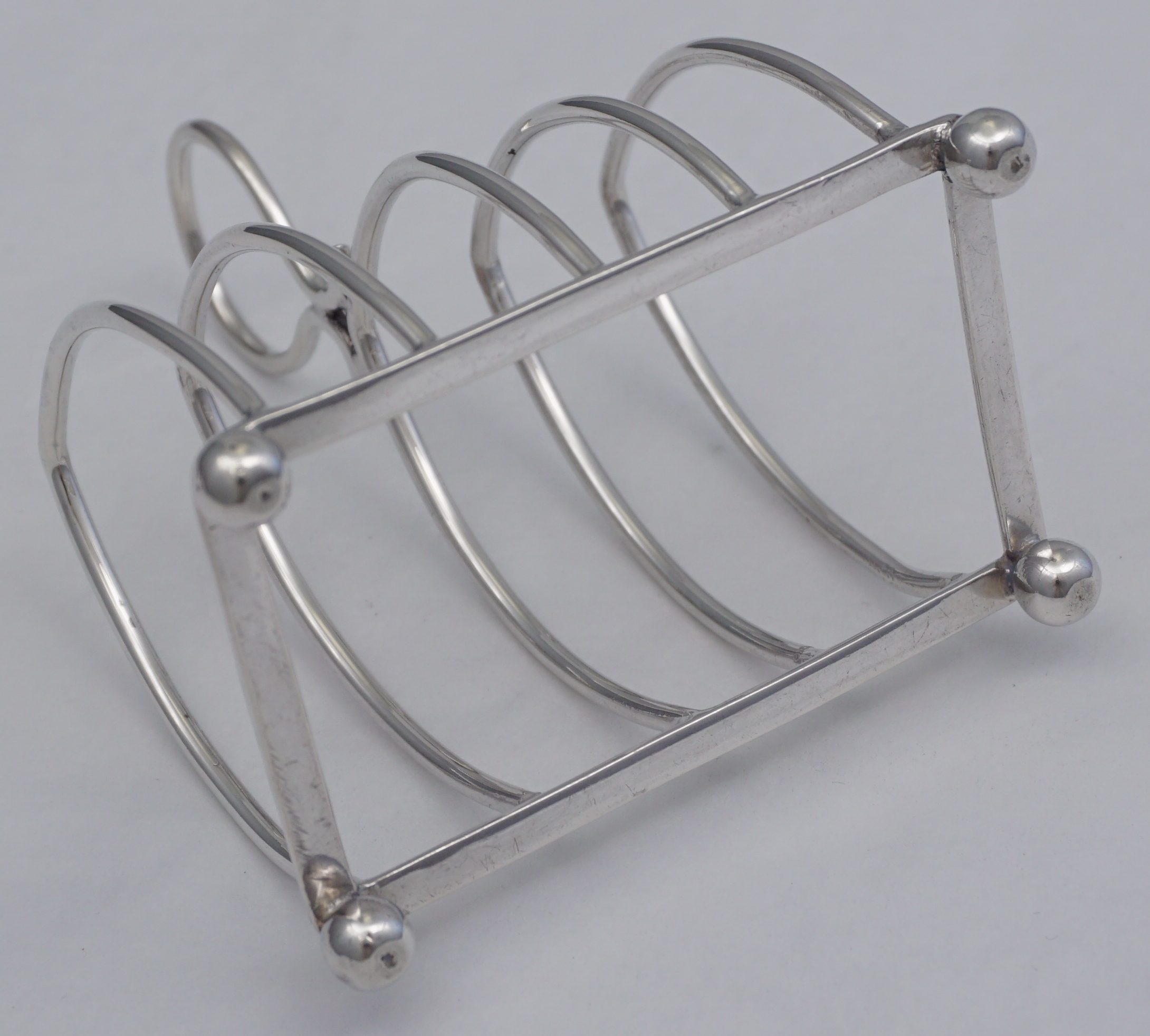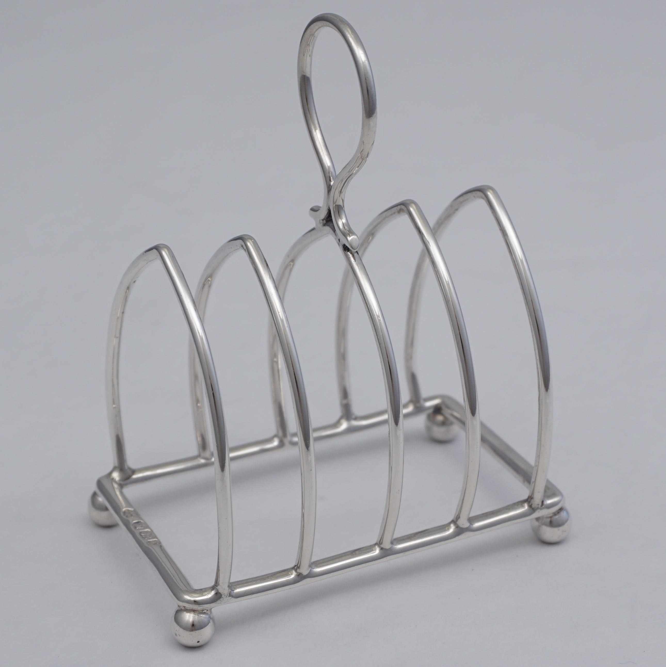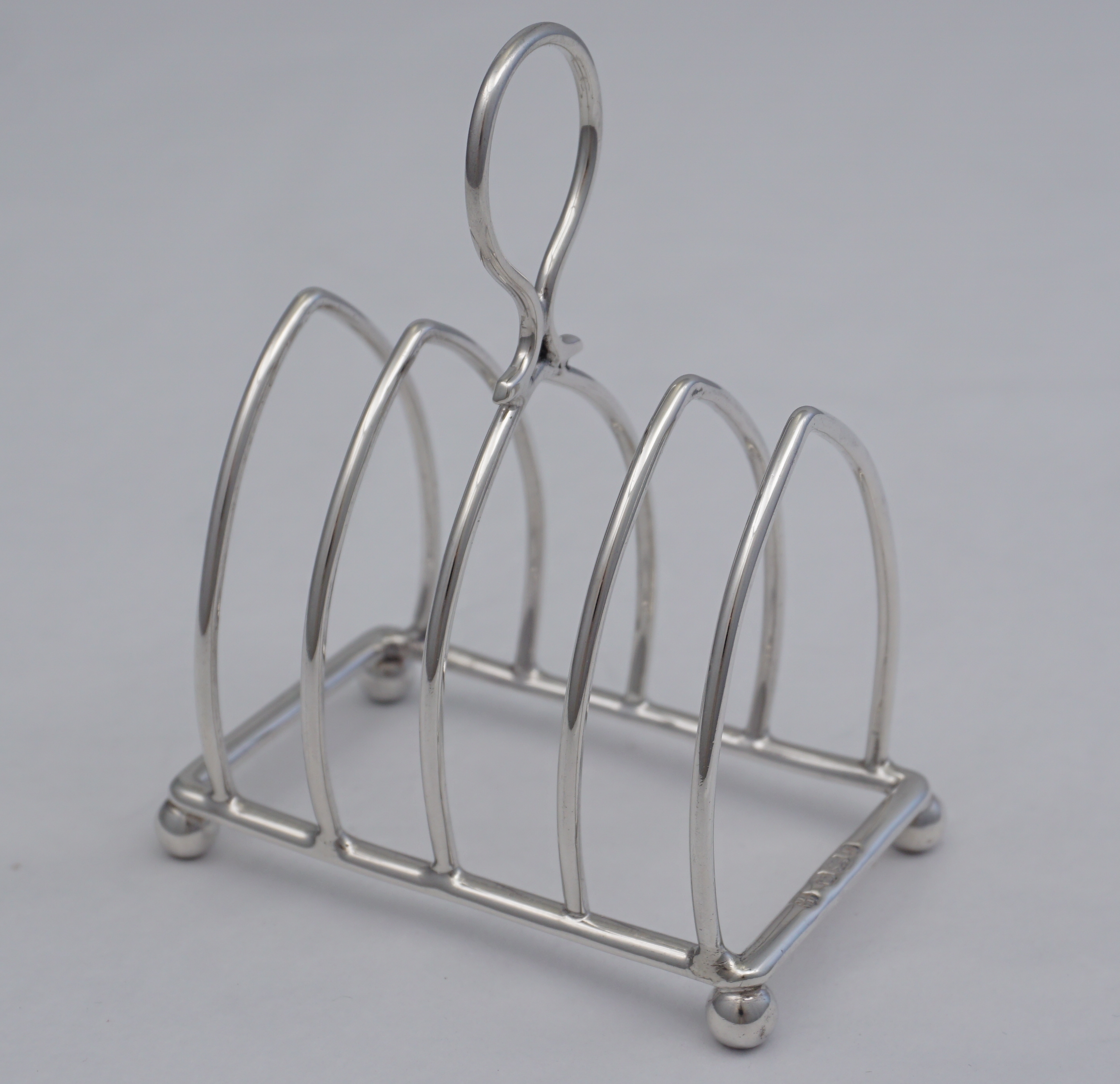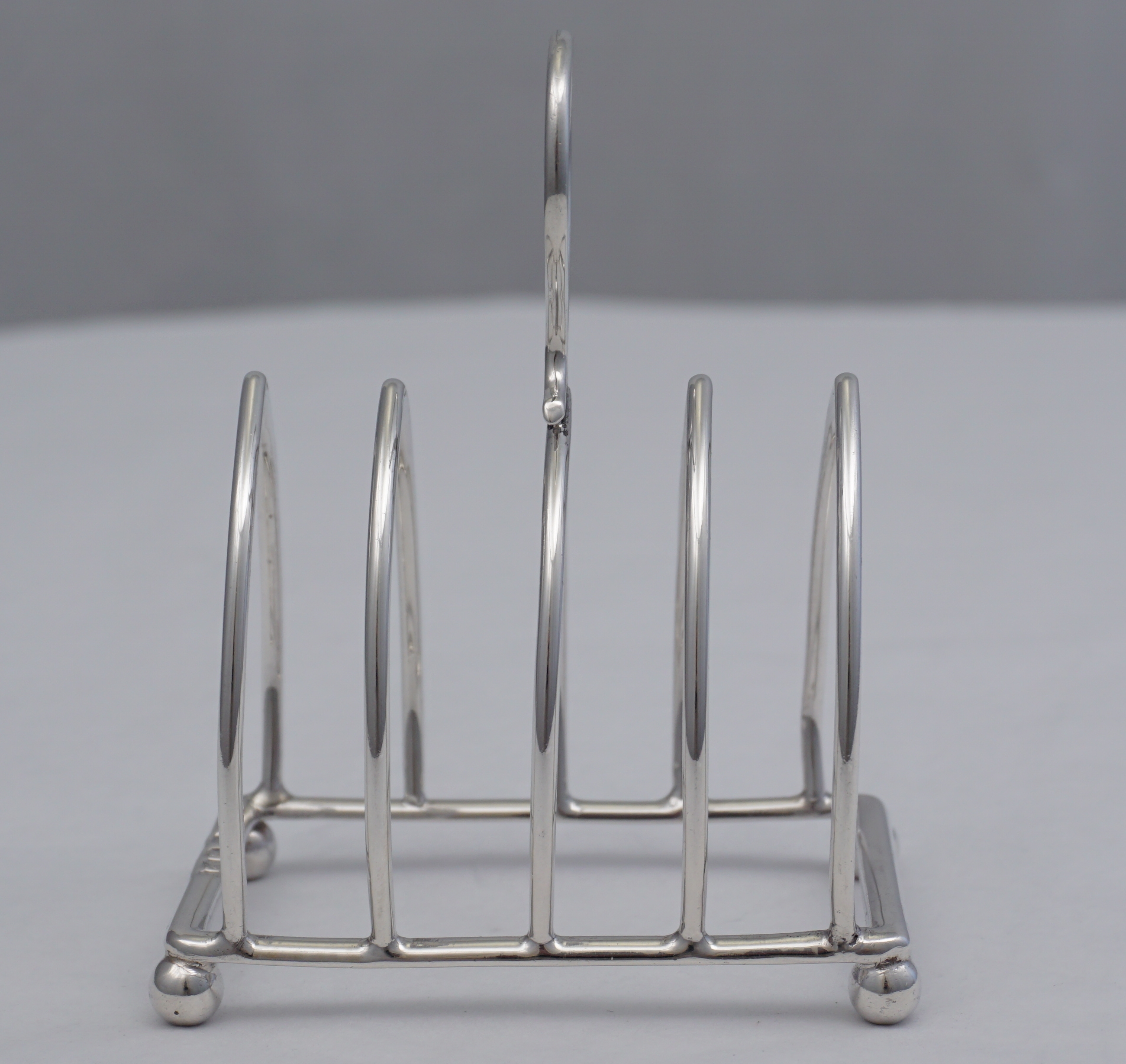DESCRIPTION | Cute little English Victorian solid sterling silver 5-bar toast rack. |