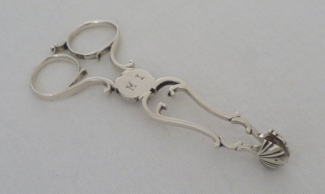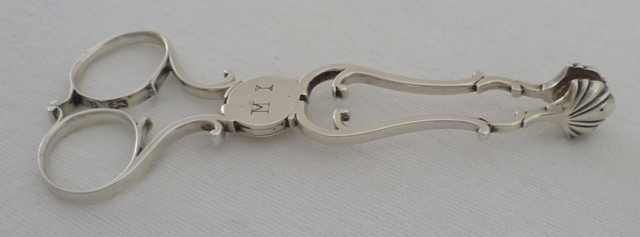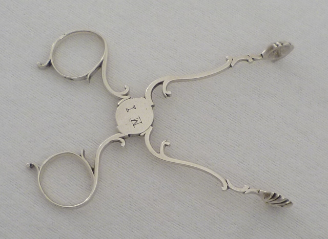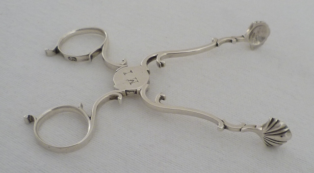 DESCRIPTION | Good Georgian silver restrained rococo sugar nips with an original initial engraving to the perfect box hinge and wonderfully clear hallmarks to both finger rings. |