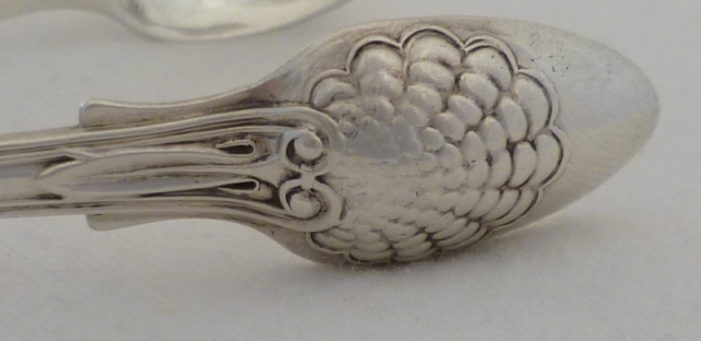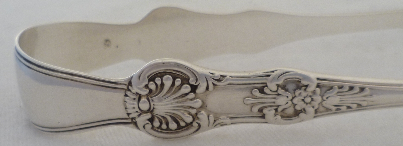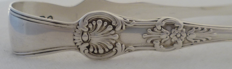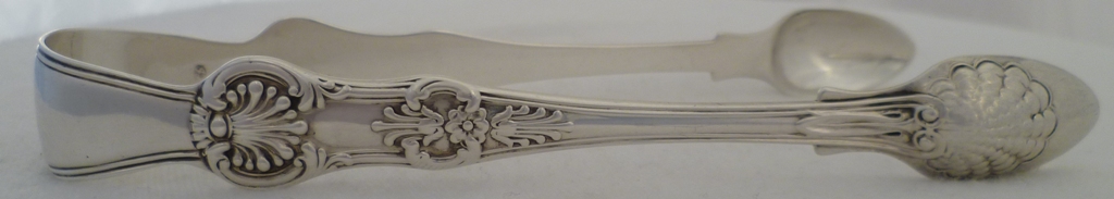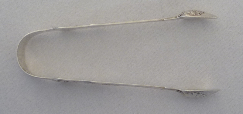DESCRIPTION | Large pair of Georgian silver Queens oyster pattern sugar tongs with an initial engraving to the bow. |
