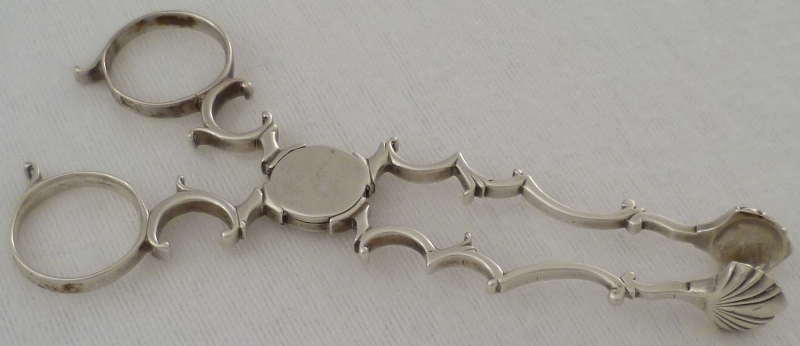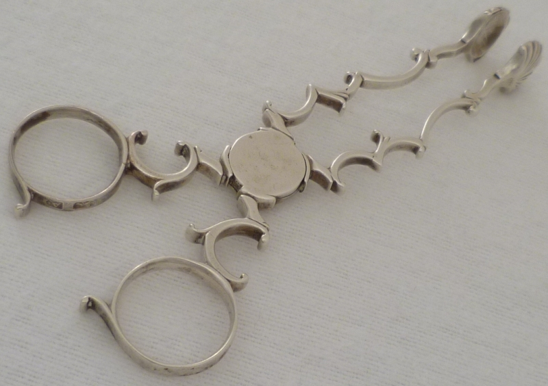 DESCRIPTION | Georgian silver sugar nips with five lobe grips. |