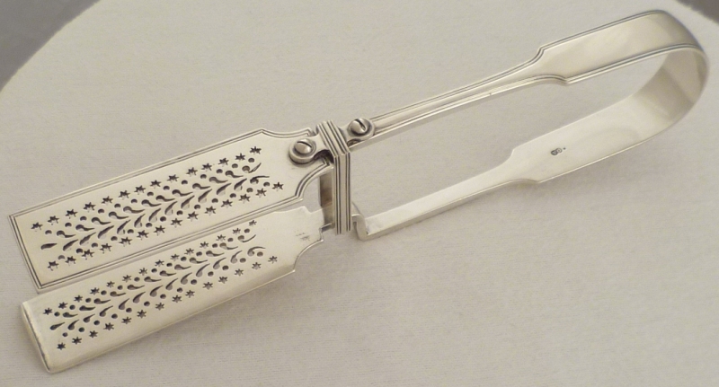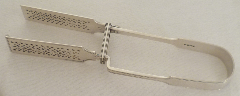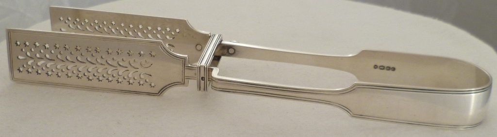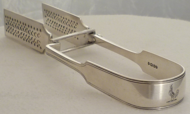 DESCRIPTION | Superb pair of Victorian silver Fiddle & Thread pattern serving tongs with a crest engraved to the bow. This type is also known as asparagus serving tongs. |