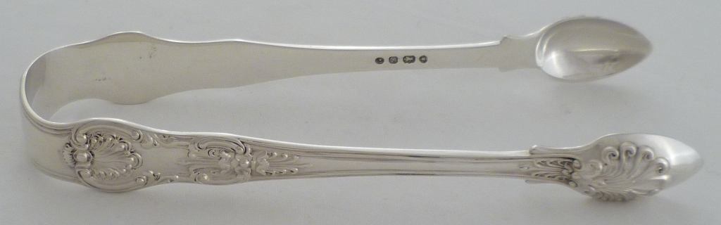 DESCRIPTION | Good Victorian silver Queen's pattern sugar tongs with a crest engraving to the bow. Matching pieces are available. |