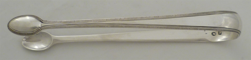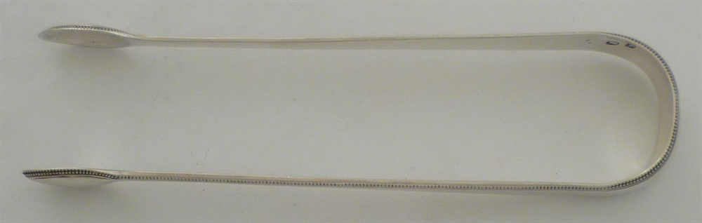 DESCRIPTION | Georgian silver bead edged Old English pattern sugar tongs with no engraving or erasure. |