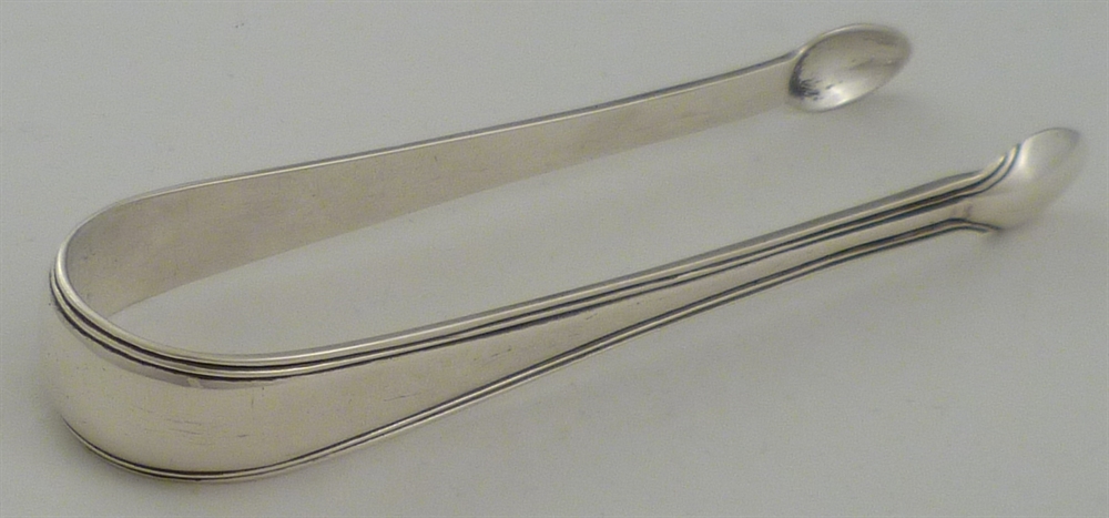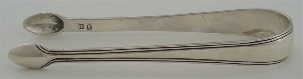DESCRIPTION | Heavy Georgian silver Old English & Thread pattern sugar tongs with no engraving. Only two marks, one a late 18th century duty mark, the other I would be interested to hear your opinion of. |