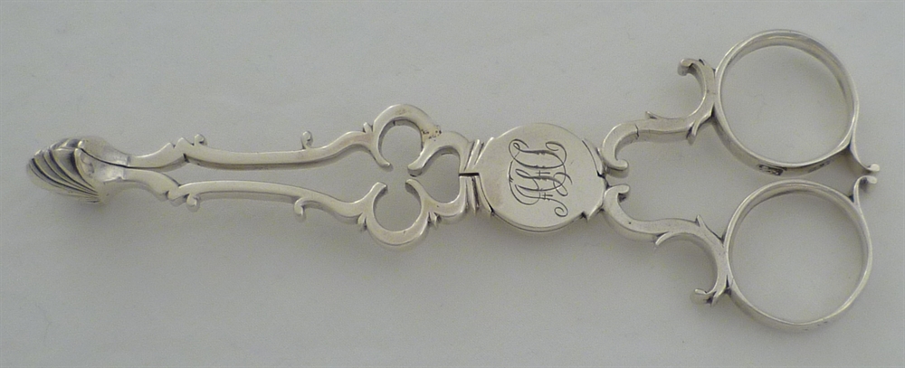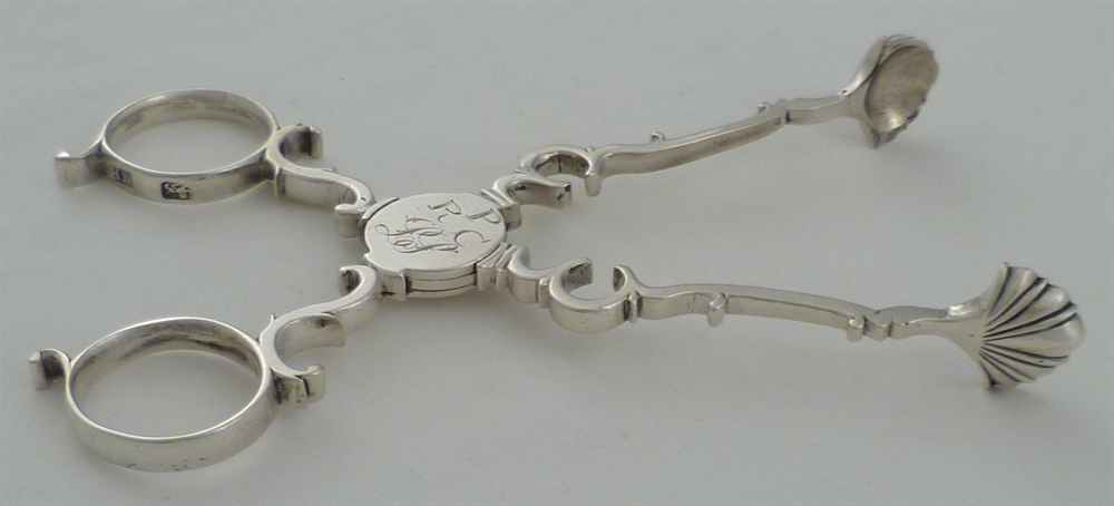 DESCRIPTION | Georgian silver sugar nips with monogram and initial engraving to the large hinge box. |