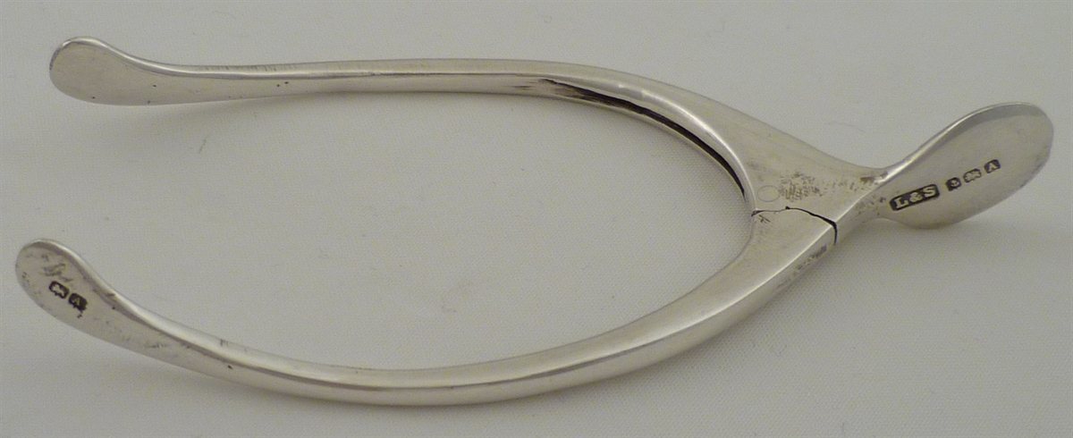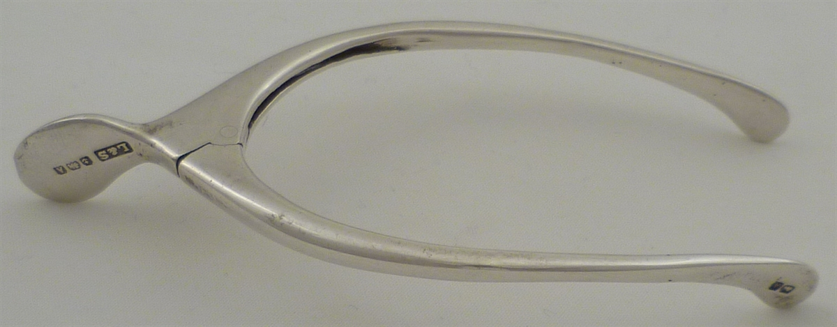 DESCRIPTION | Pair of sprung silver wishbone sugar tongs. |