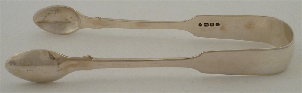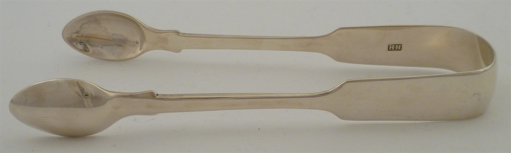 DESCRIPTION | Victorian solid silver Fiddle pattern sugar tongs with a crest engraving to the bow. |