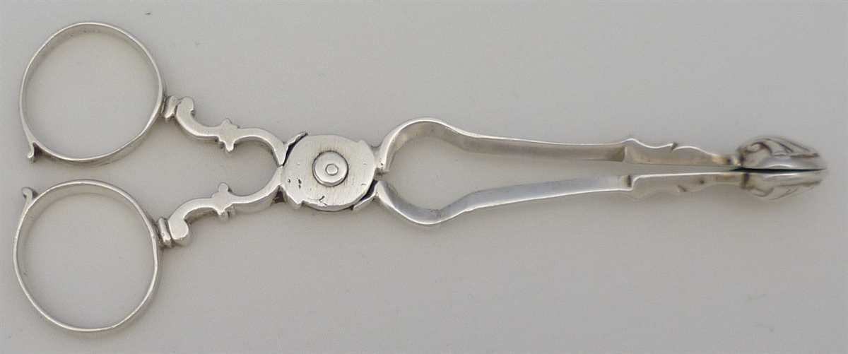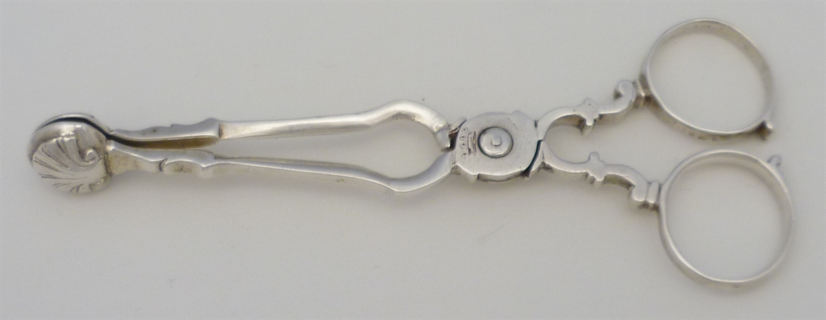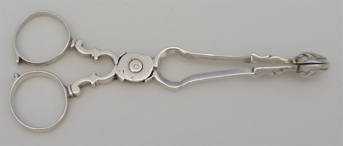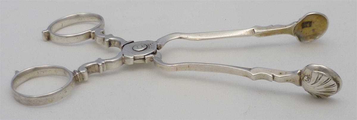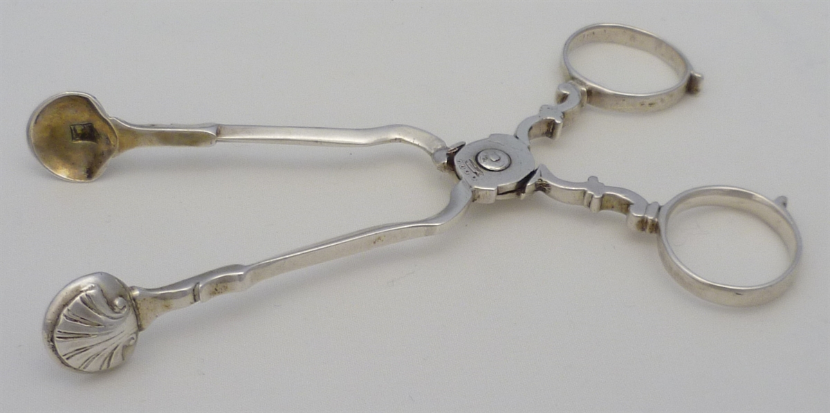 English Georgian cast solid sterling silver sugar nips with a baron's coronet engraved to the small box hinge.