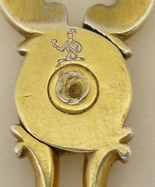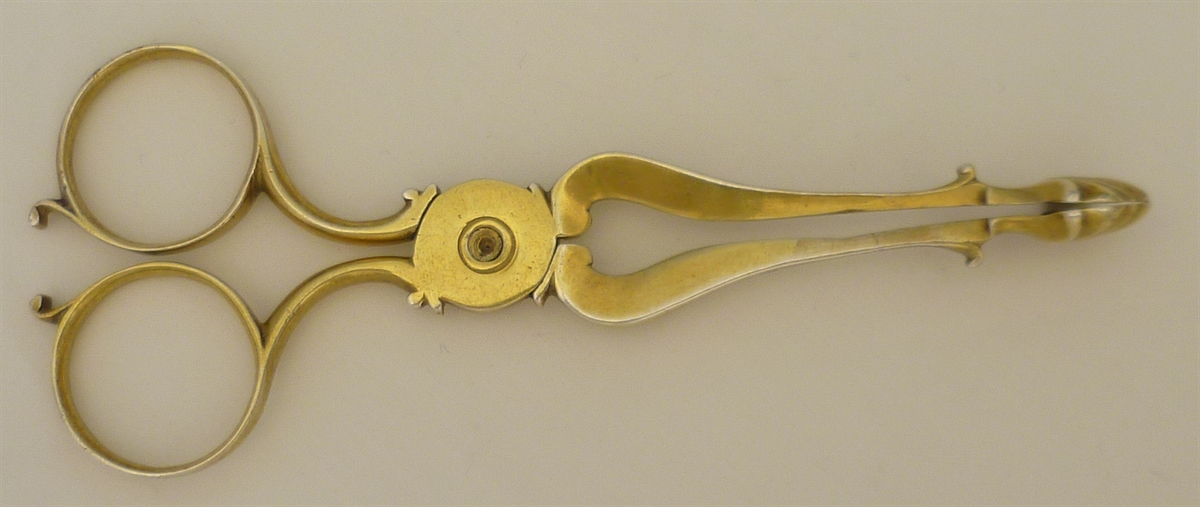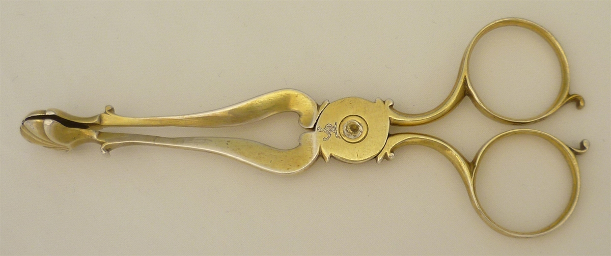 DESCRIPTION | Pretty pair of Georgian solid cast sterling silver gilt sugar nips with a tiny crest engraving to the bull's eye box hinge and trilobe shell grips. Marked only with lion passant and maker's to both finger rings |