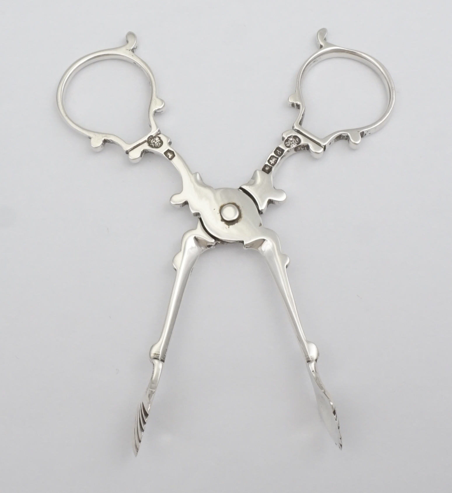 DESCRIPTION | Pretty little pair of English solid sterling silver sugar nips in mid 18th century style but actually made in 1921. |