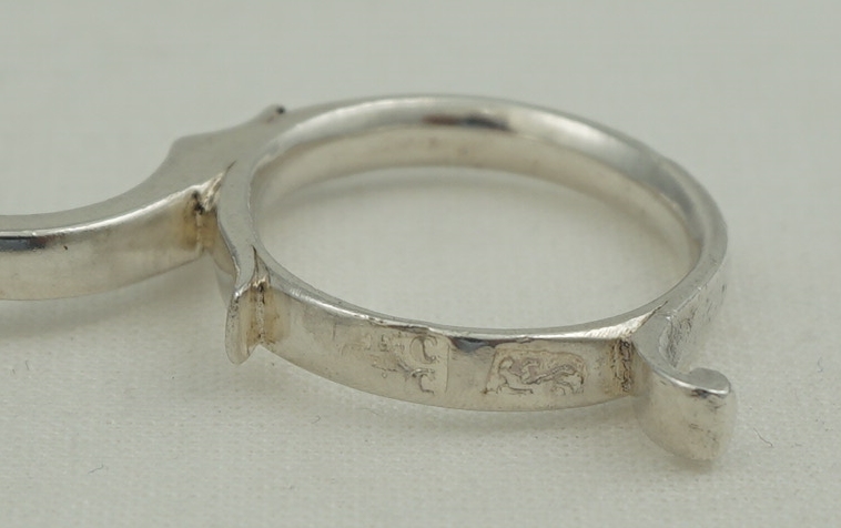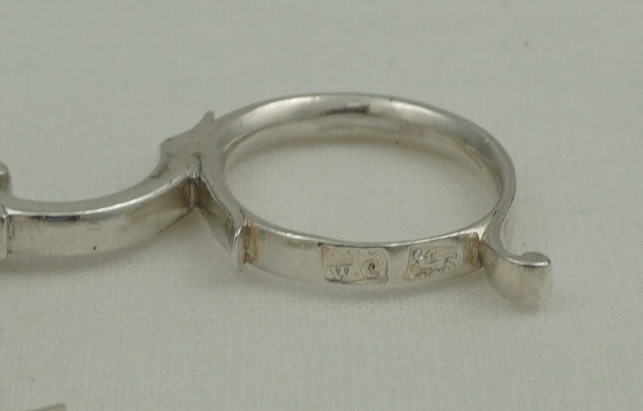 CONDITION | good but cast silver like this is brittle and will break. I can see one excellently executed repair within a 'C' scroll to one shaft and lower quality work to the solder joints between the box hinge and one arm and one shaft. Box hinge appears to have been hit with a large hammer as the surface is no longer perfectly flat. Box hinges wear resulting in floppy action. The action of this pair is good. The hammer blow is a legitimate and effective, although rather crude, method of correcting hinge play. |