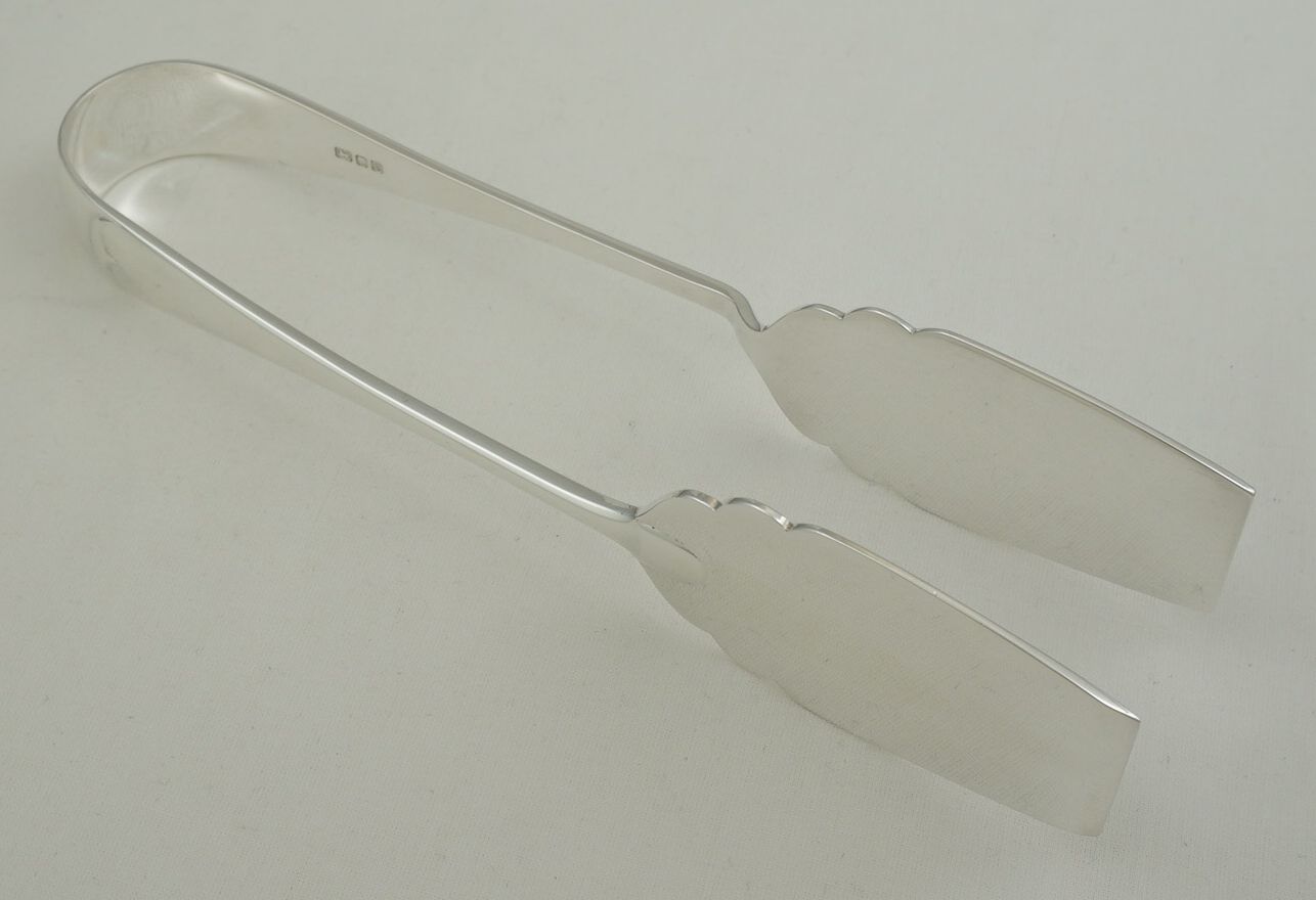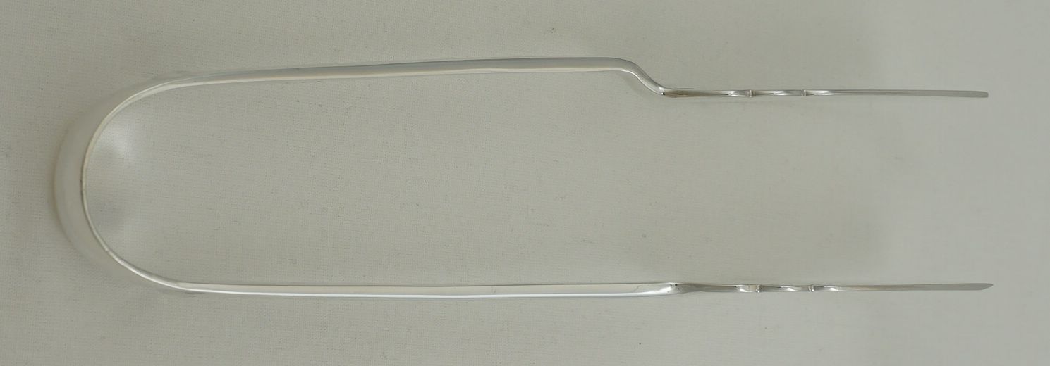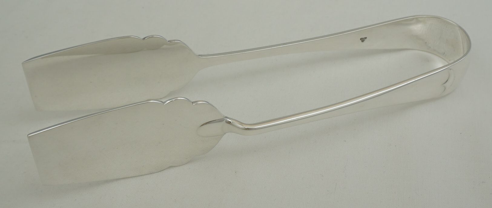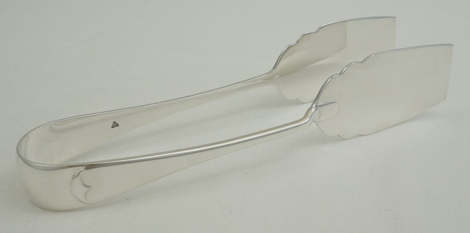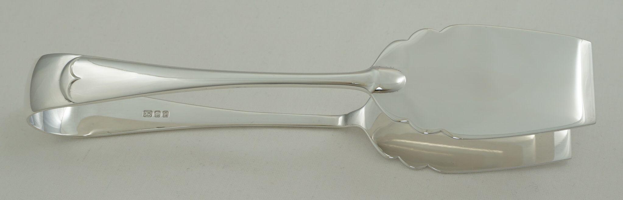 | DESCRIPTION | Superb and almost unnecessarily heavy pair of vintage Old English pattern solid sterling silver serving tongs with no engraving or erasure. One blade is gently edged to aide lifting slices off a plate. |
